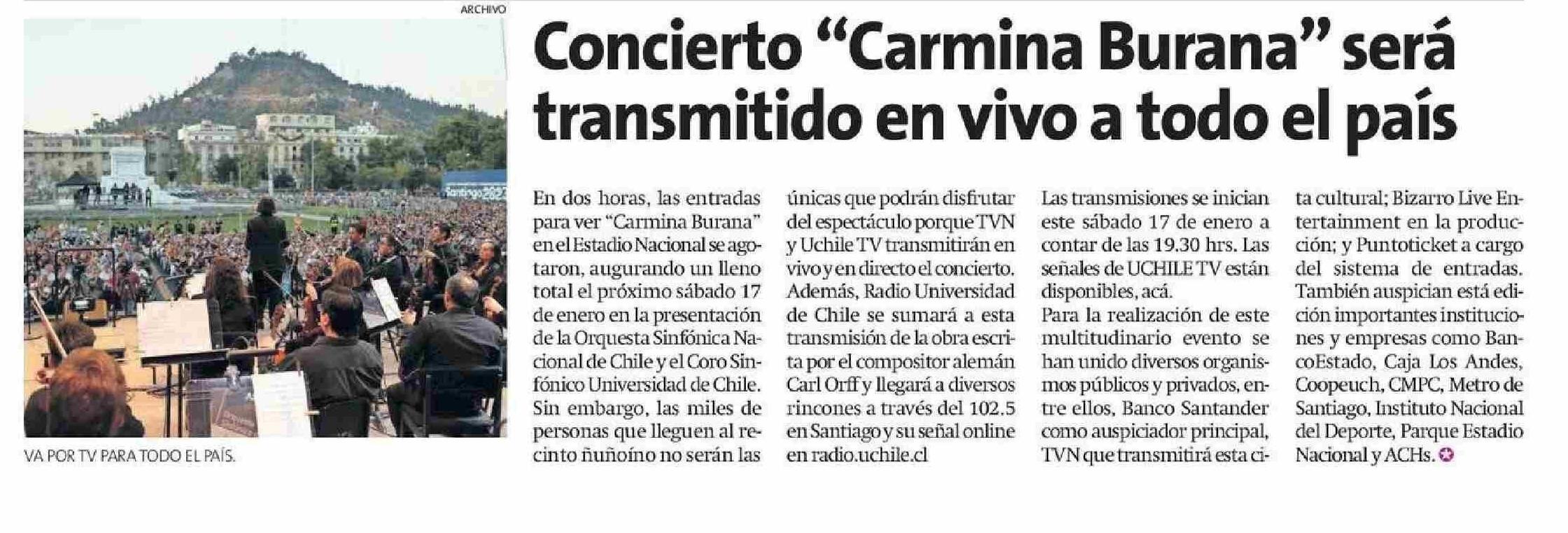 Concierto “Carmina Burana” será transmitido en vivo a todo el país 10-01-2026 La Estrella de Antofagasta |