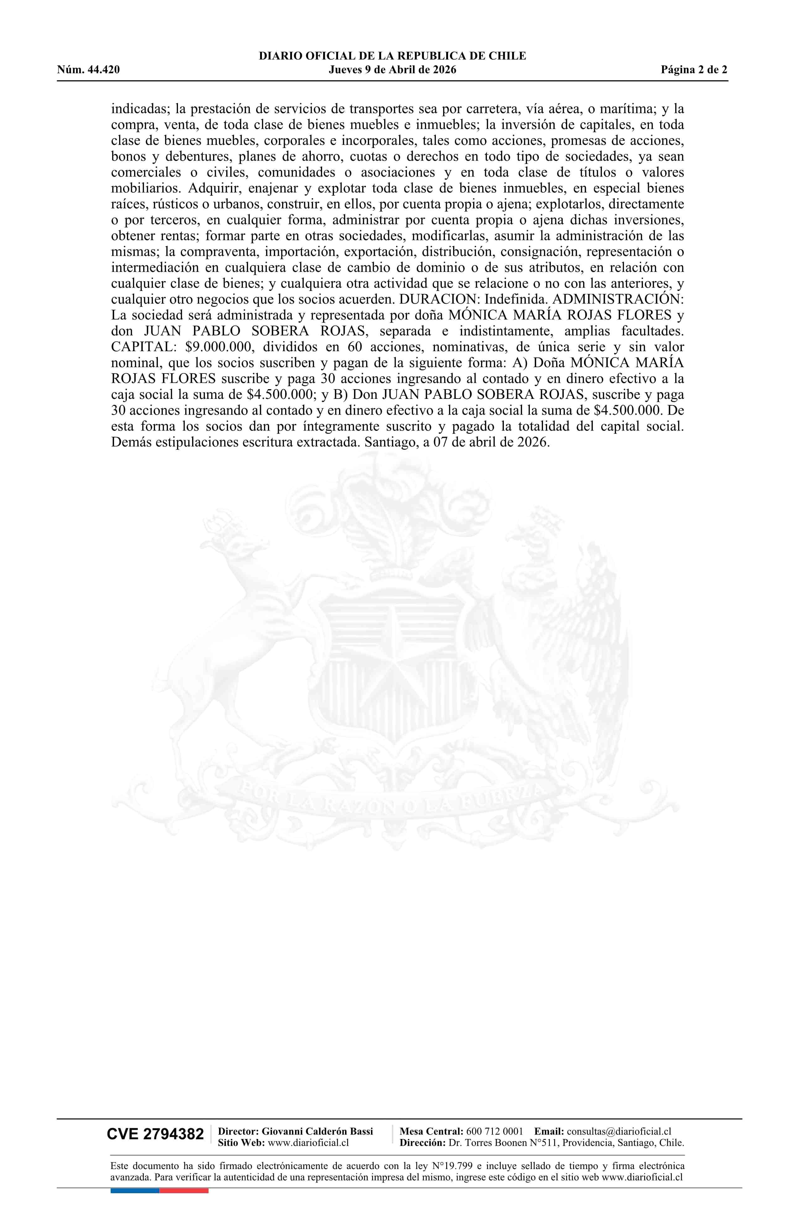 EUSKARA SpA 09-04-2026 Diario Oficial Edición Electrónica |