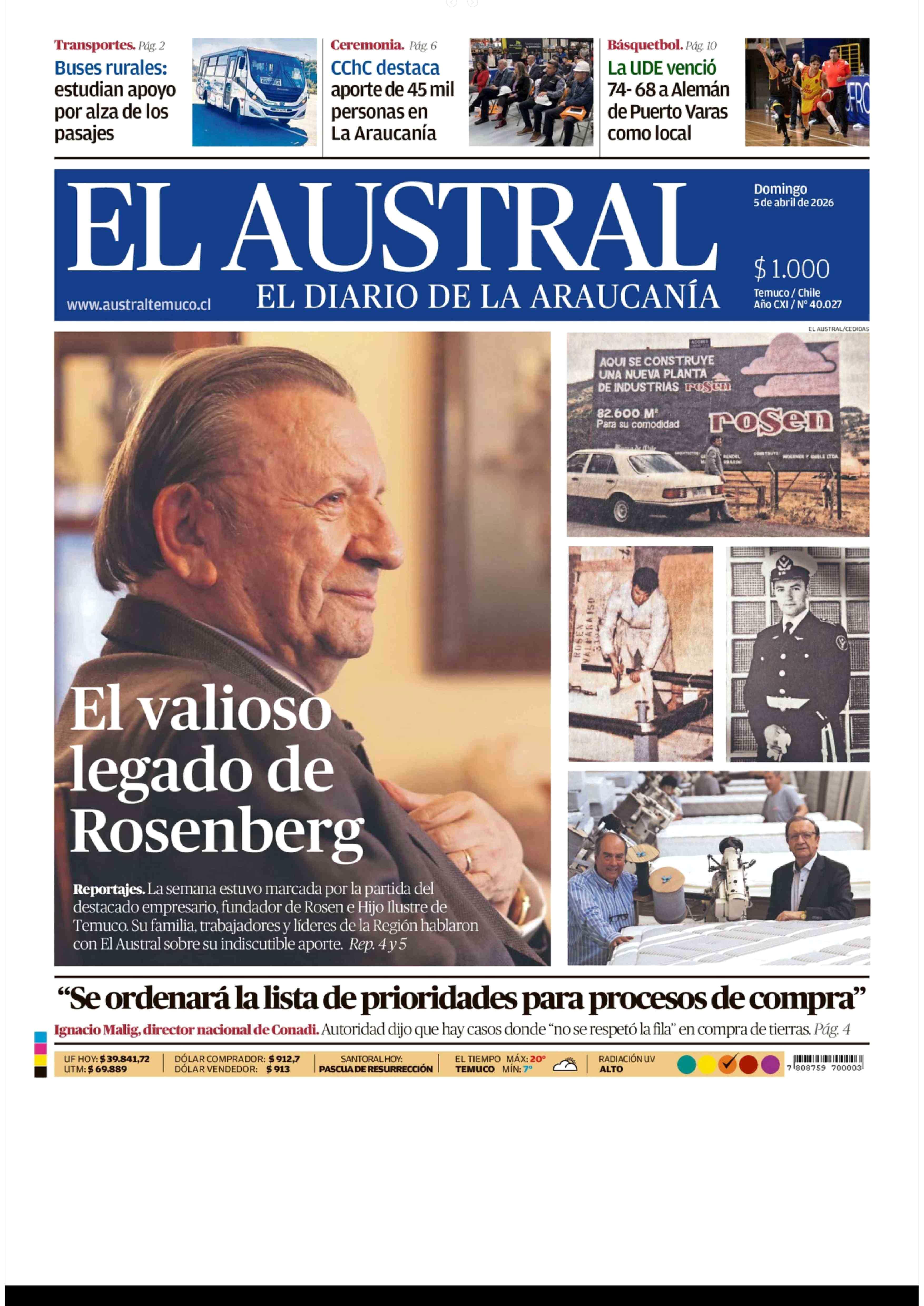 | Fecha: | 05-04-2026 | Sector: | Portada | Región: | Región de la Araucanía |