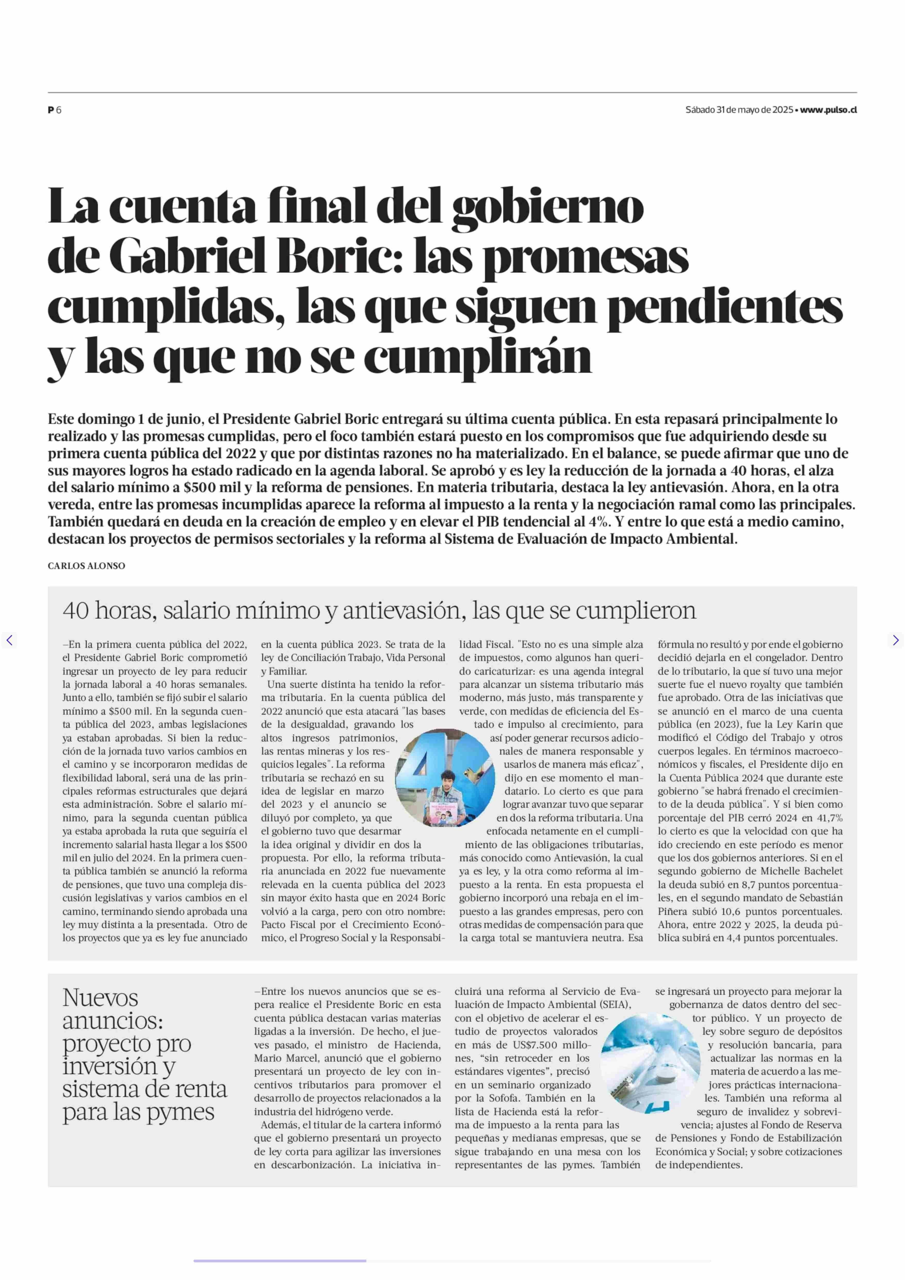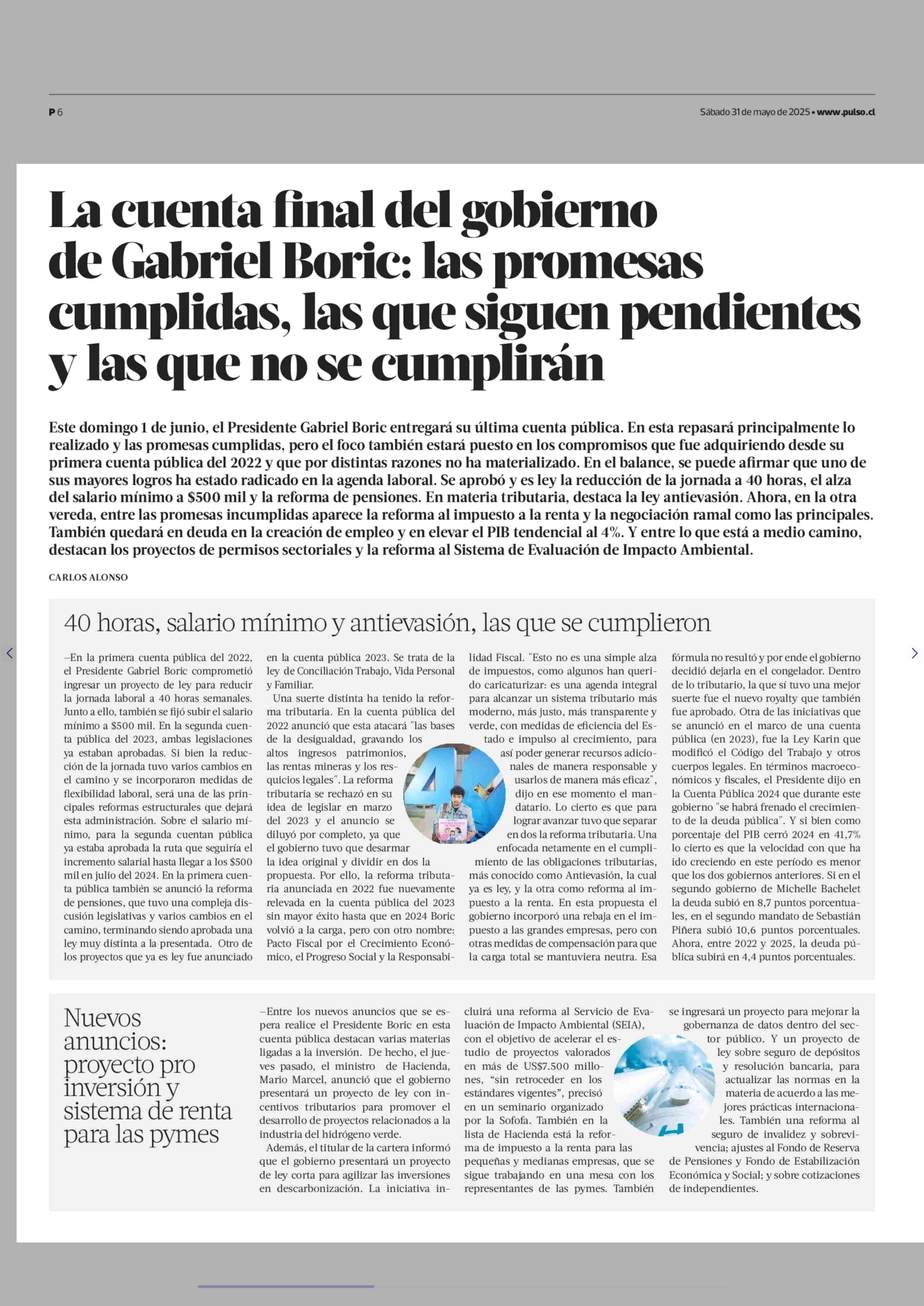 La cuenta final del gobierno de Gabriel Boric: las promesas cumplidas, las que siguen pendientes y las que no se cumplirán 31-05-2025 La Tercera |