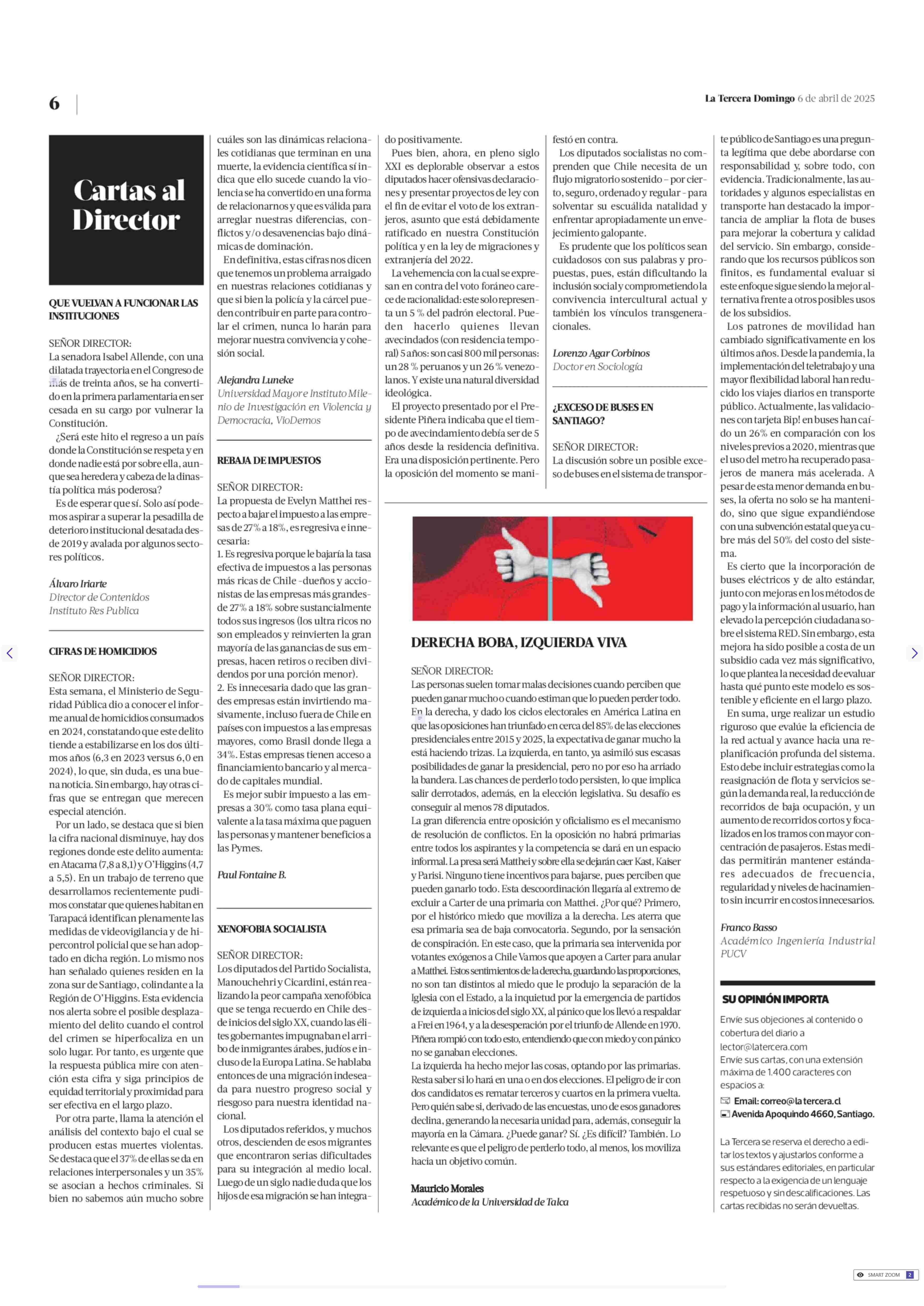 CARTAS: ¿EXCESO DE BUSES EN SANTIAGO? 06-04-2025 La Tercera |
