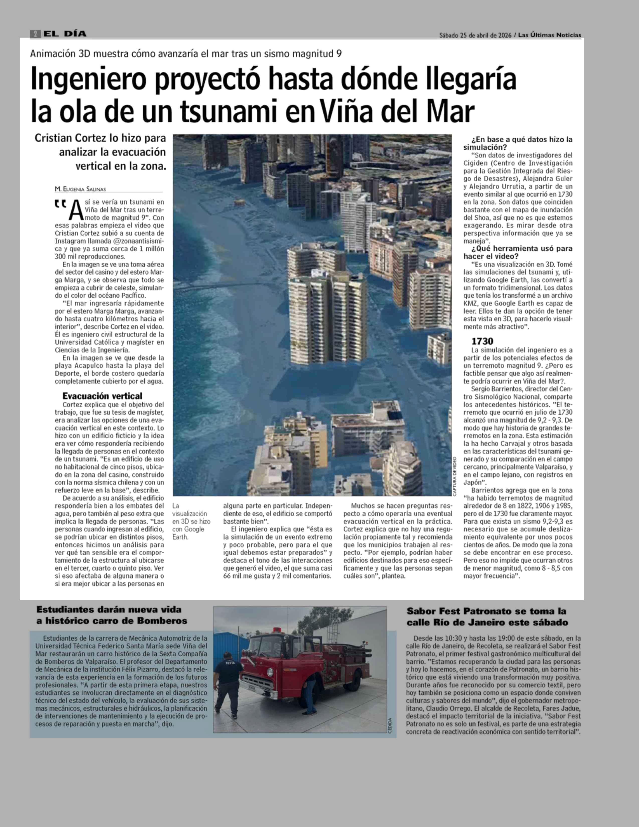 Ingeniero proyecto hasta donde llegaría la ola de un tsunami en Viña del Mar 25-04-2026 Las Últimas Noticias |