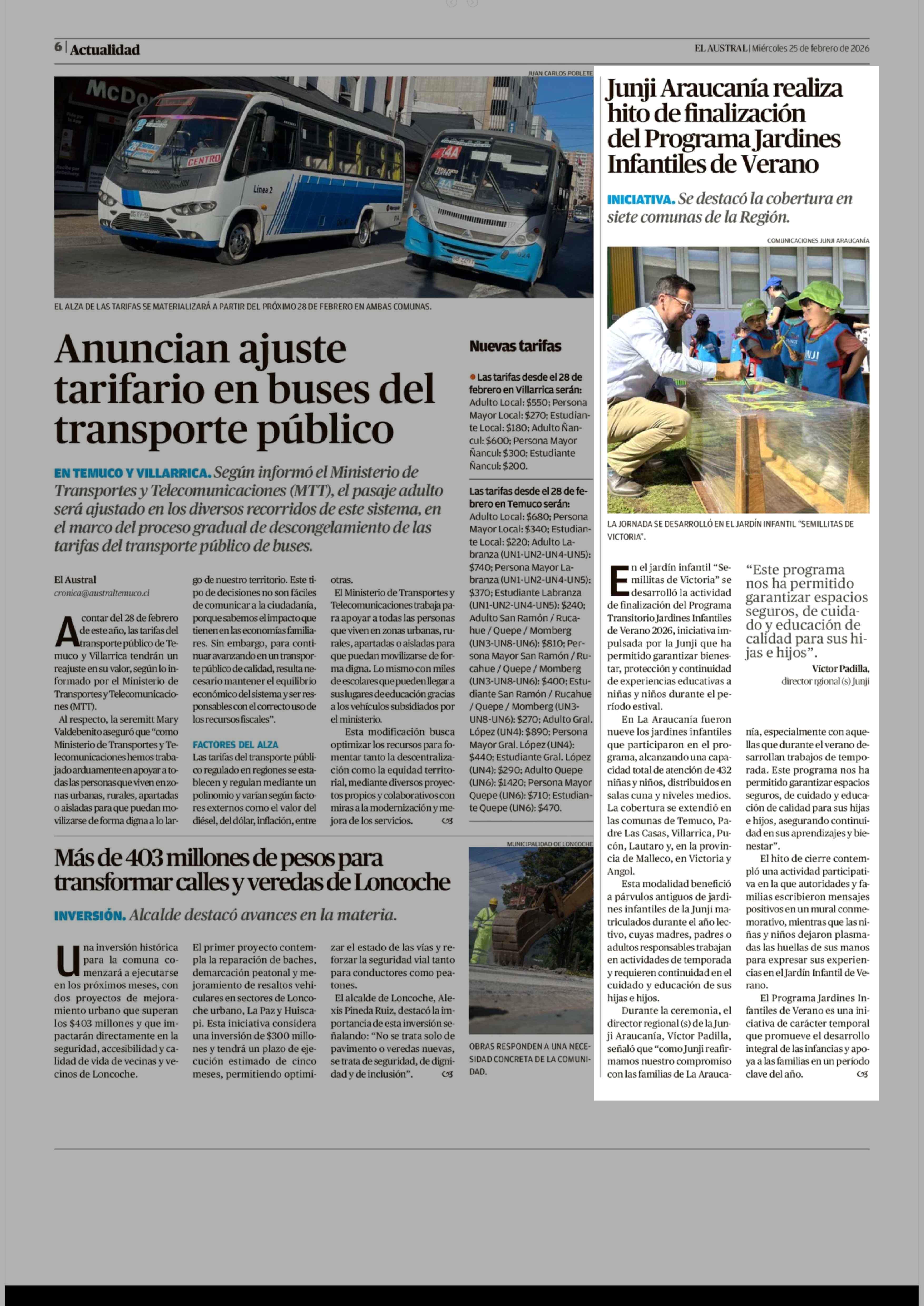 Fecha: 25-02-2026 Sector: Noticia general Región: Región de la Araucanía