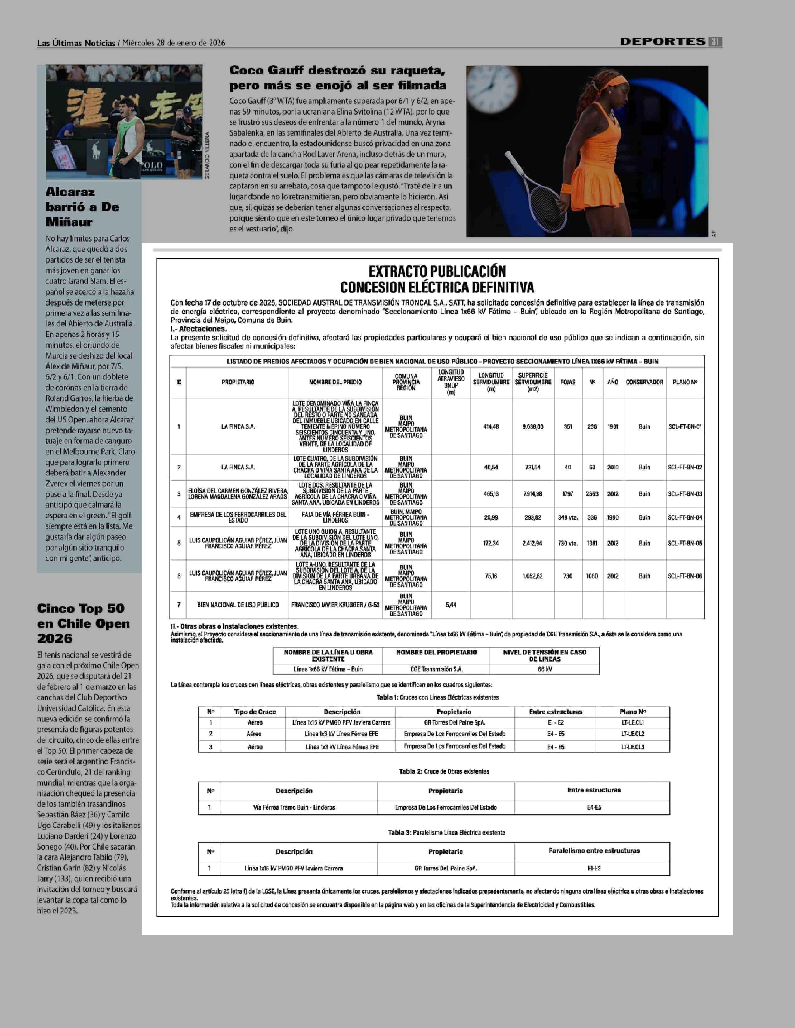 Extractos: EXTRACTO PUBLICACIÓN CONCESION ELÉCTRICA DEFINITIVA 28-01-2026 Las Últimas Noticias |