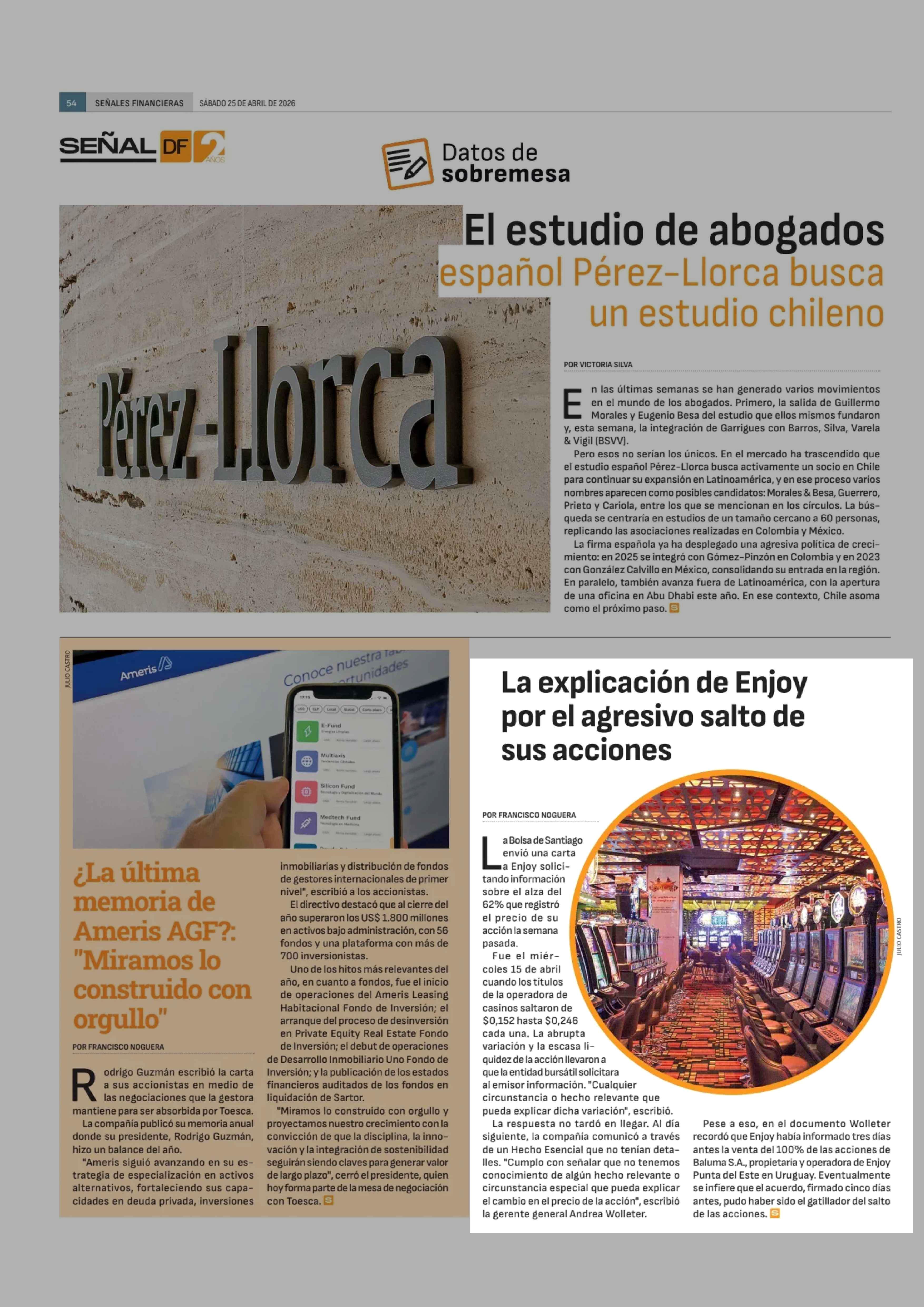 La explicación de Enjoy por el agresivo salto de sus acciones 25-04-2026 Diario Financiero |