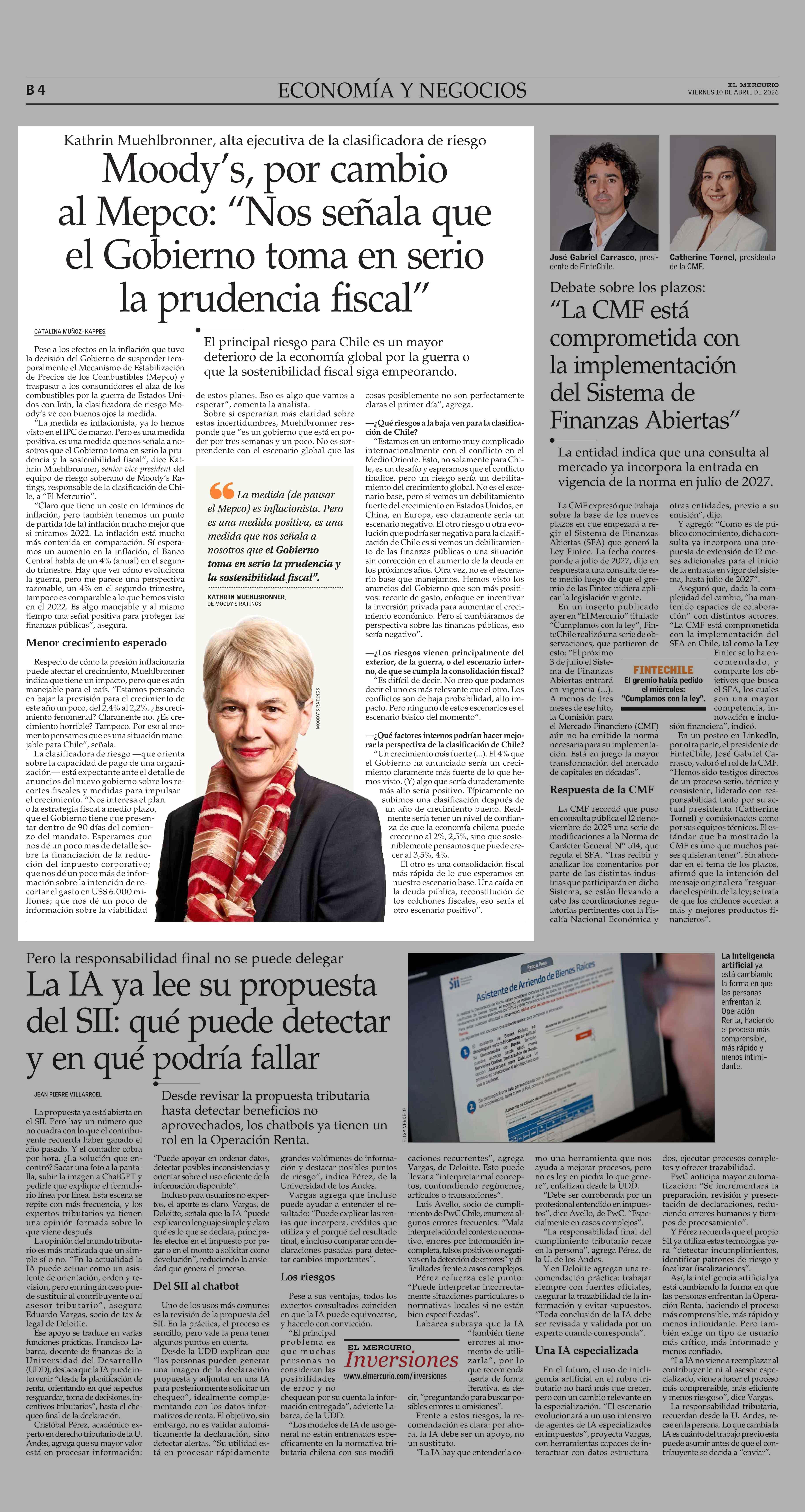Moody’s, por cambio al Mepco: “Nos señala que el Gobierno toma en serio la prudencia fiscal” 10-04-2026 El Mercurio |
