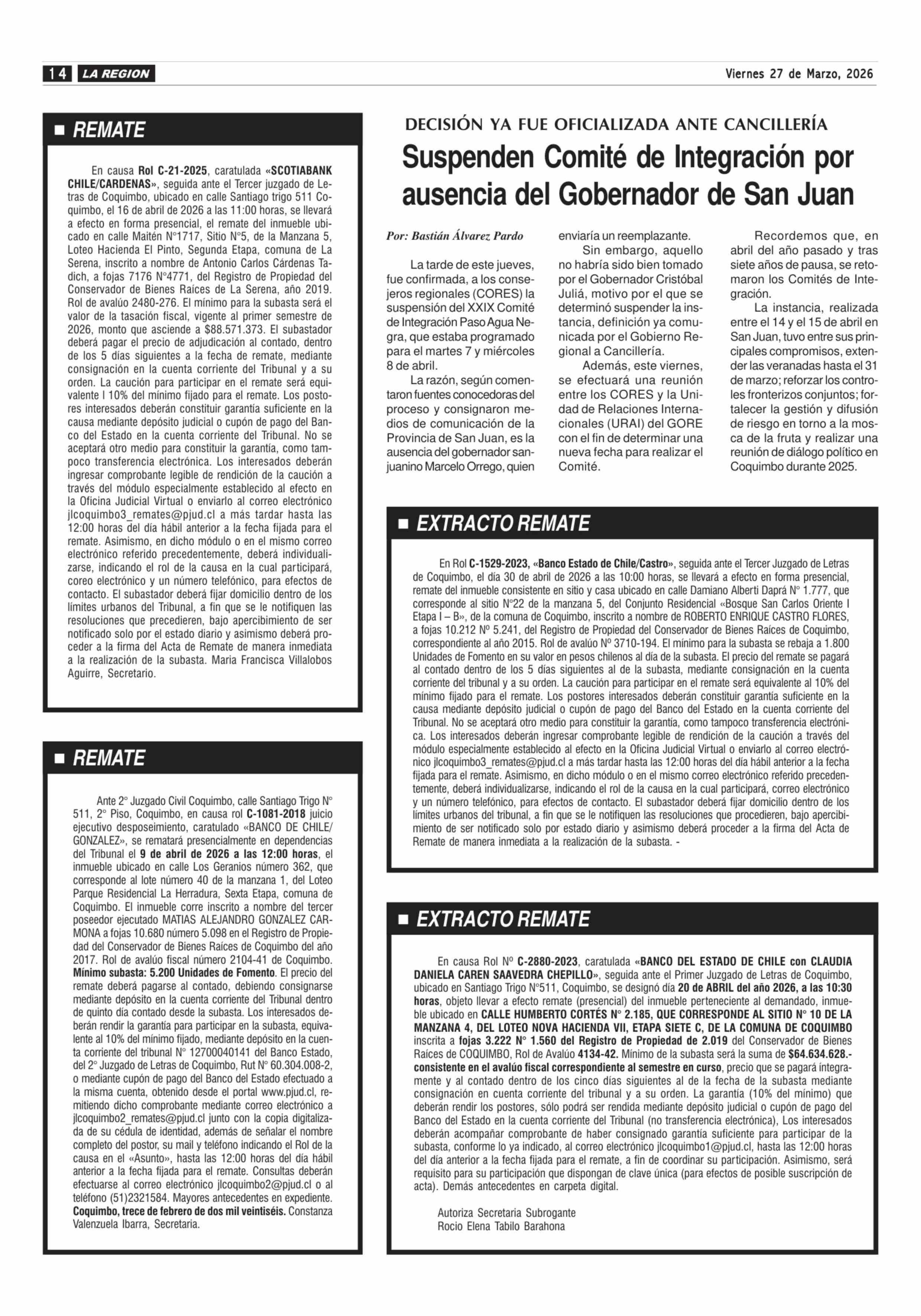 Fuente: Diario la Región (Diario la Región) Página(s): 14