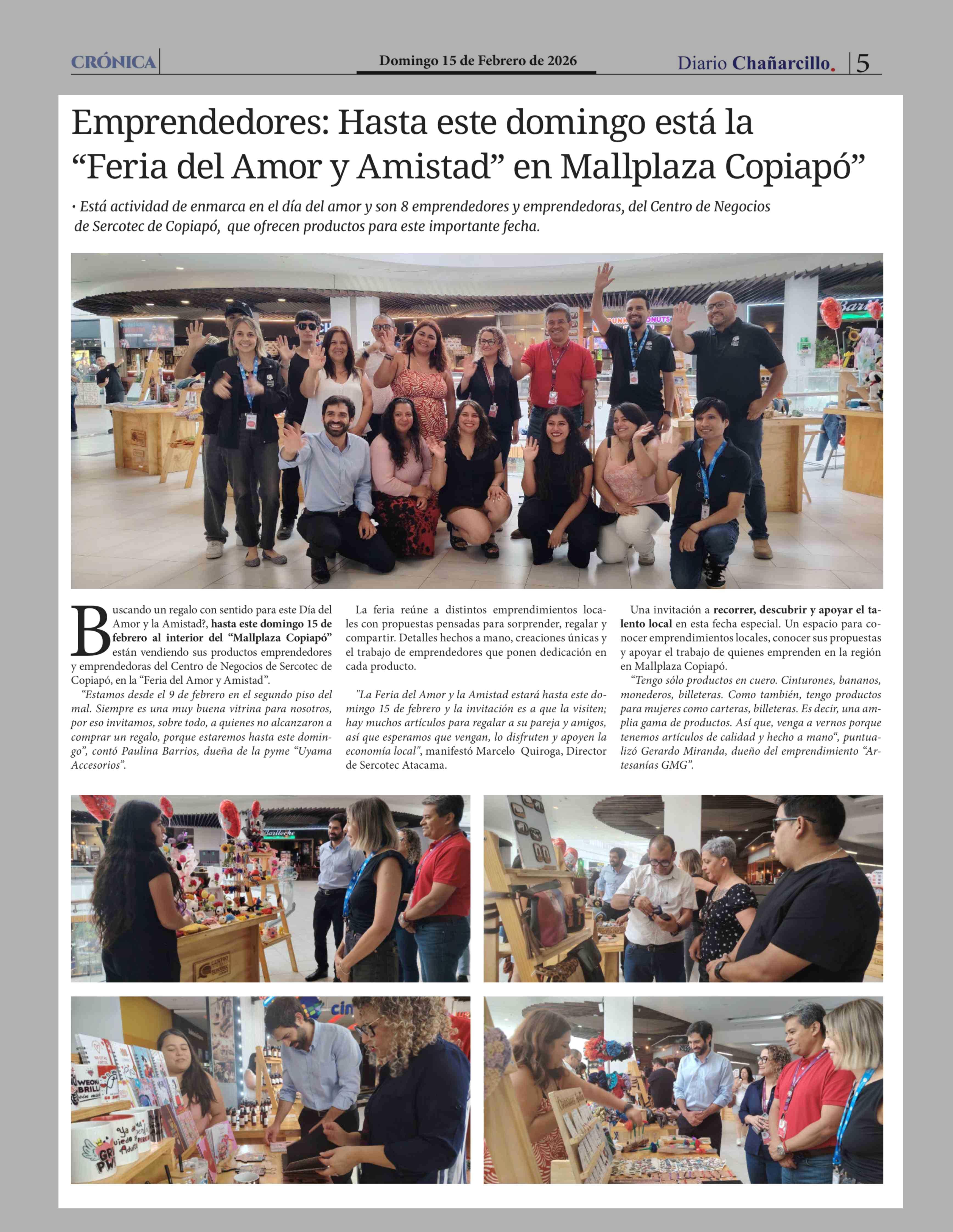 Emprendedores: Hasta este domingo está la "Feria del Amor y Amistad" en Mallplaza Copiapó" 15-02-2026 Diario Chañarcillo |