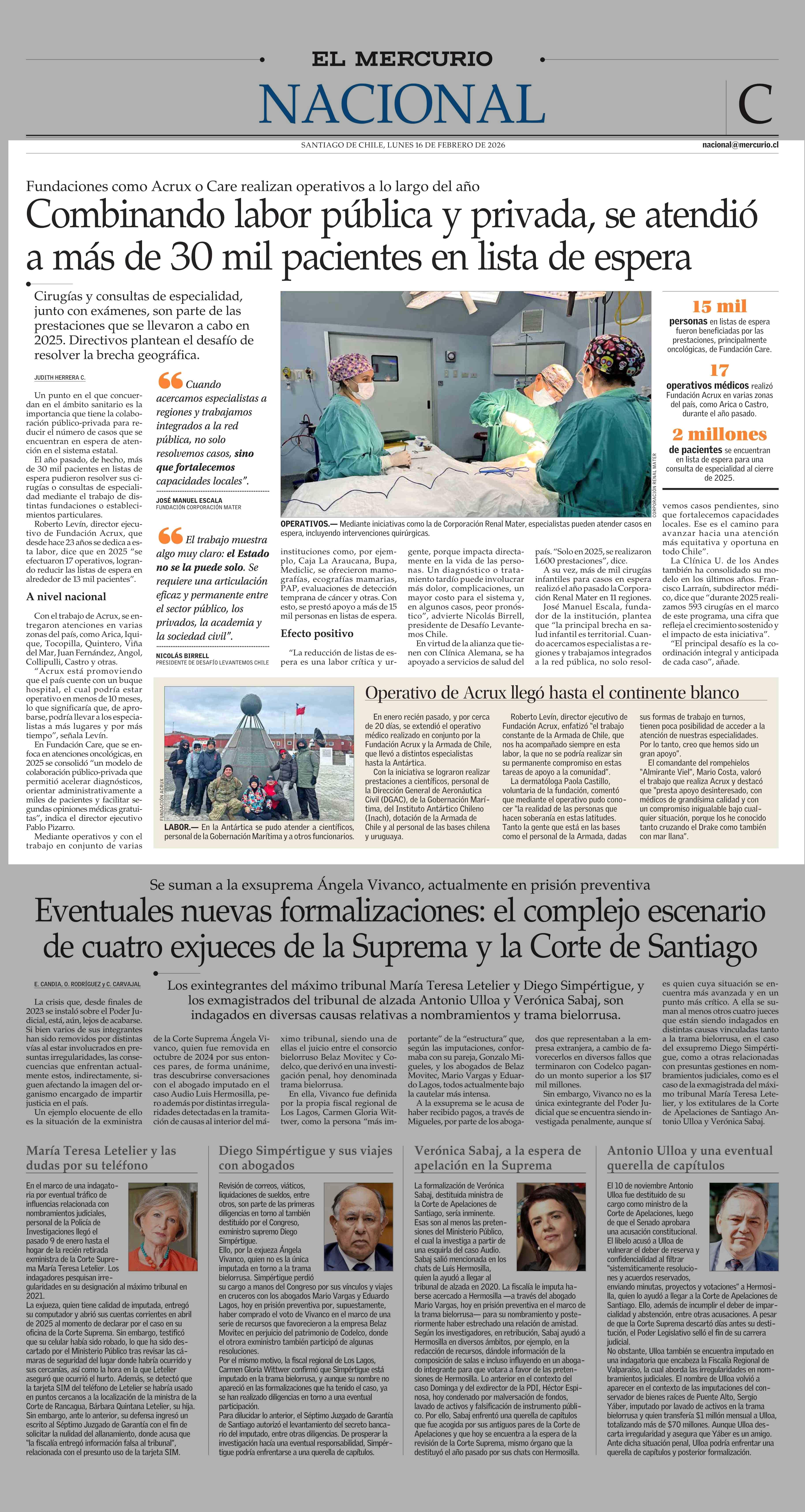 | Fecha: | 16-02-2026 | Sector: | Portada | Región: | Región Metropolitana de Santiago |