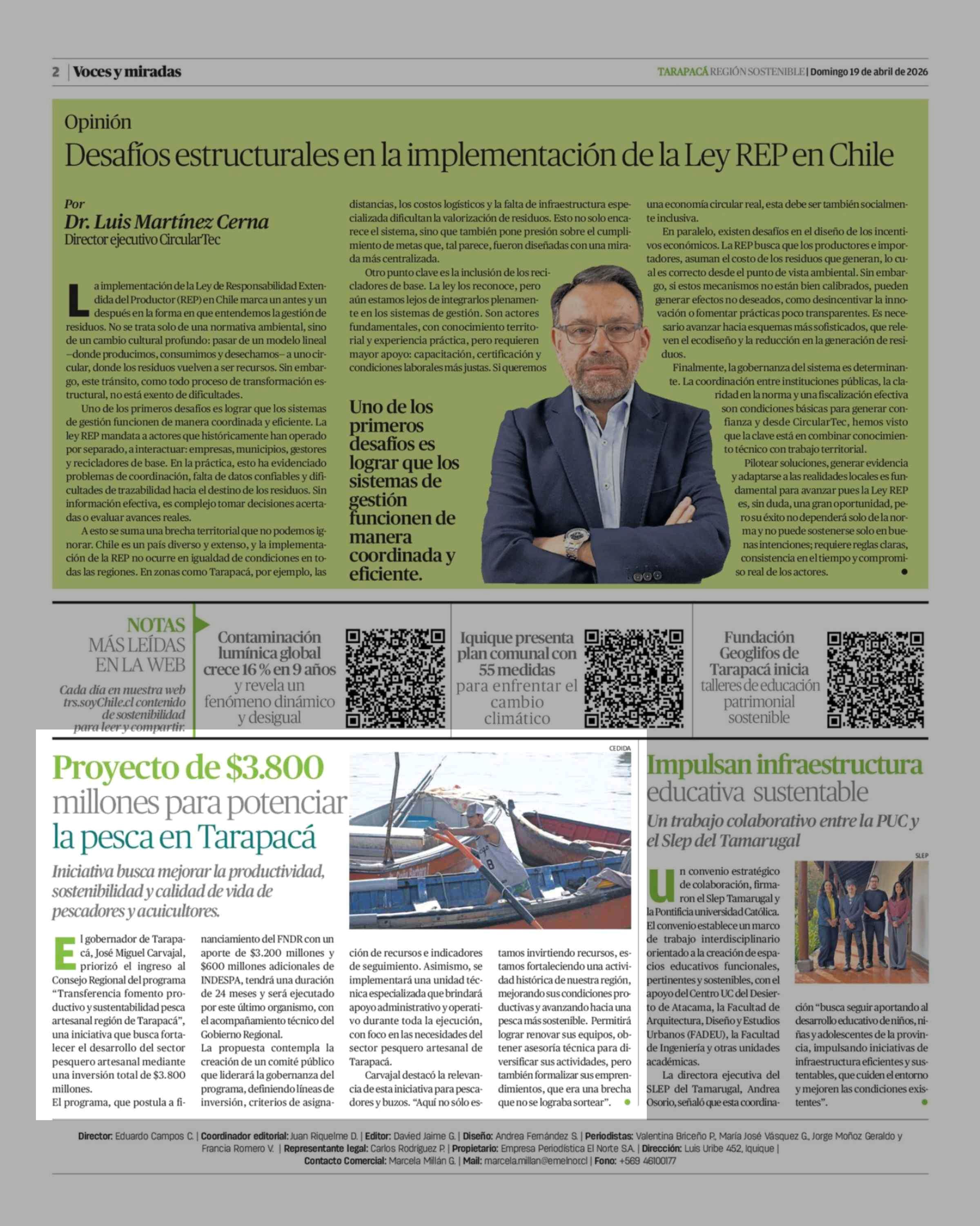 Proyecto de $3.800 millones para potenciar la pesca en Tarapacá 19-04-2026 La Estrella de Iquique |