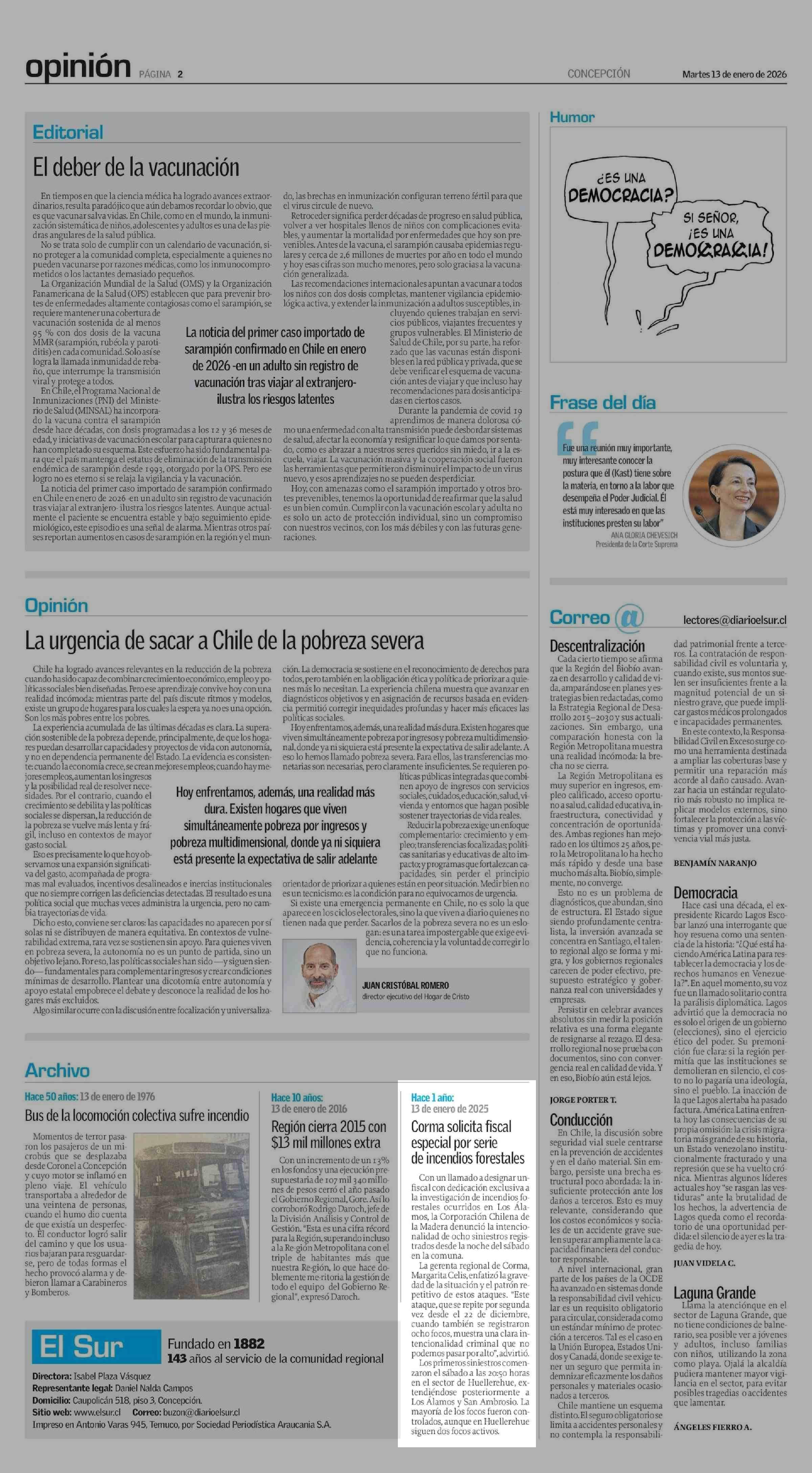 Fecha: 13-01-2026 Sector: Noticia general Región: Región del Bío-Bío