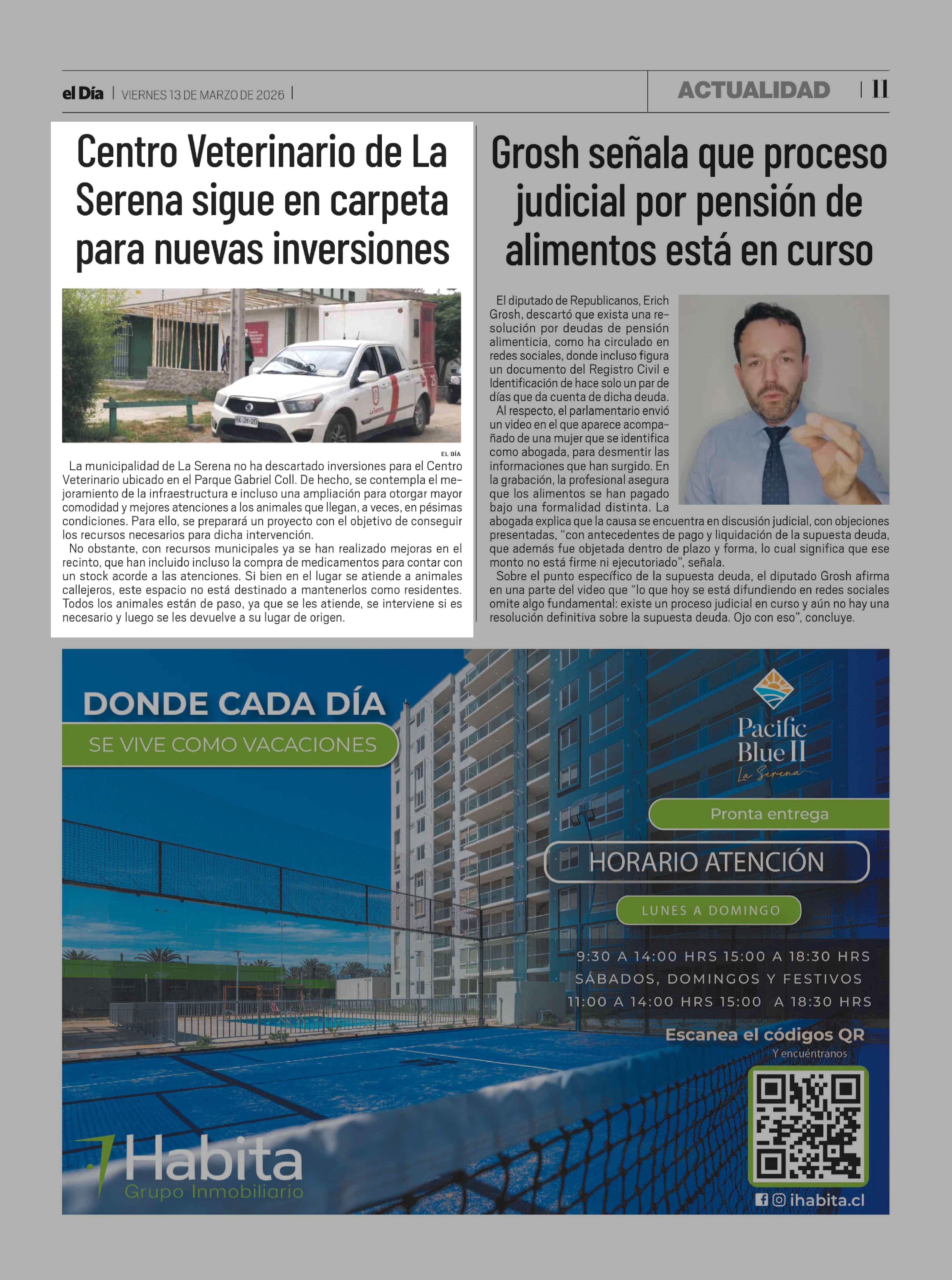 Centro Veterinario de La Serena sigue en carpeta para nuevas inversiones 13-03-2026 El Día |