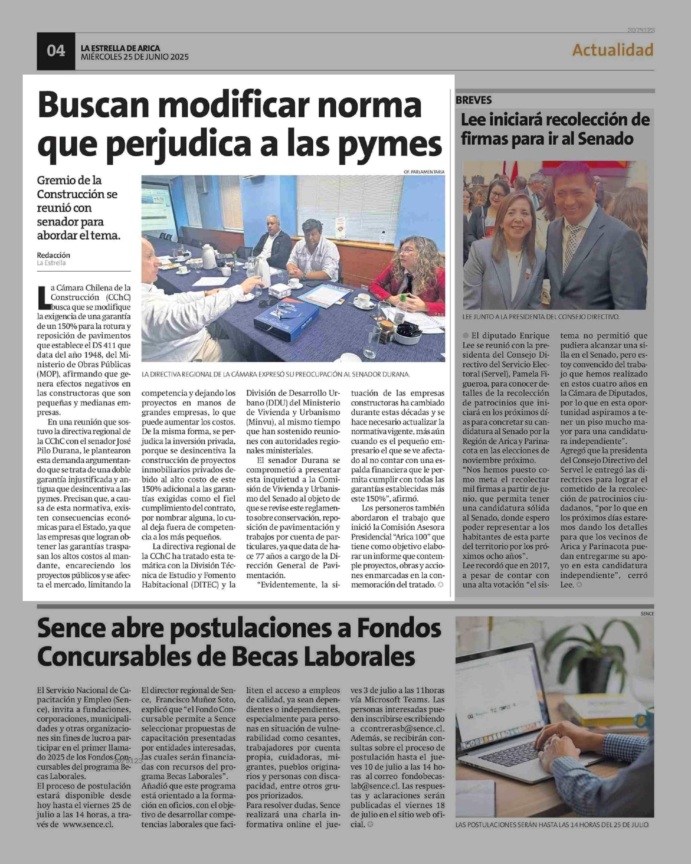 Buscan modificar norma que perjudica a las pymes 25-06-2025 La Estrella de Arica |