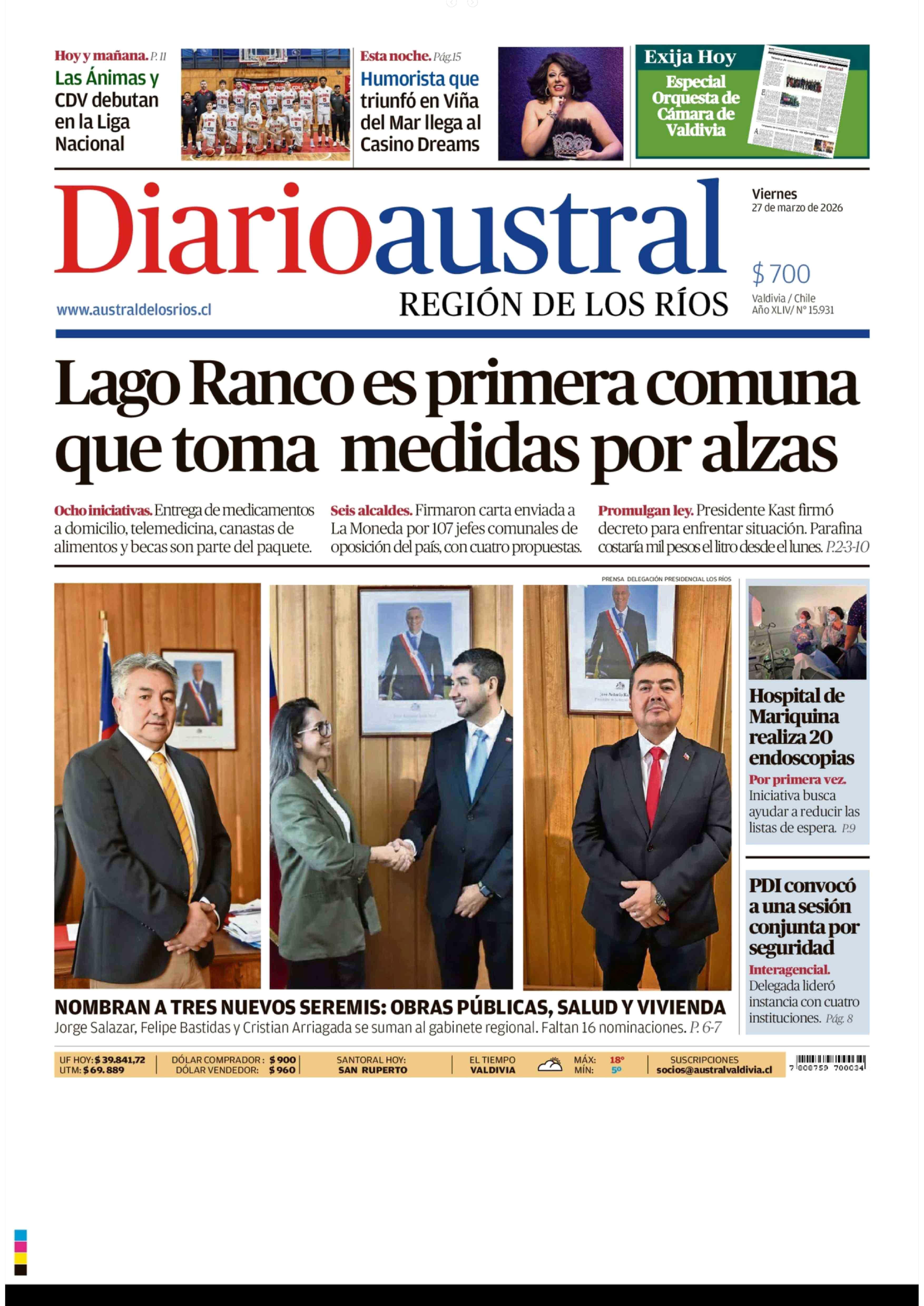 Fecha: 27-03-2026 Sector: Portada Región: Región de Los Ríos