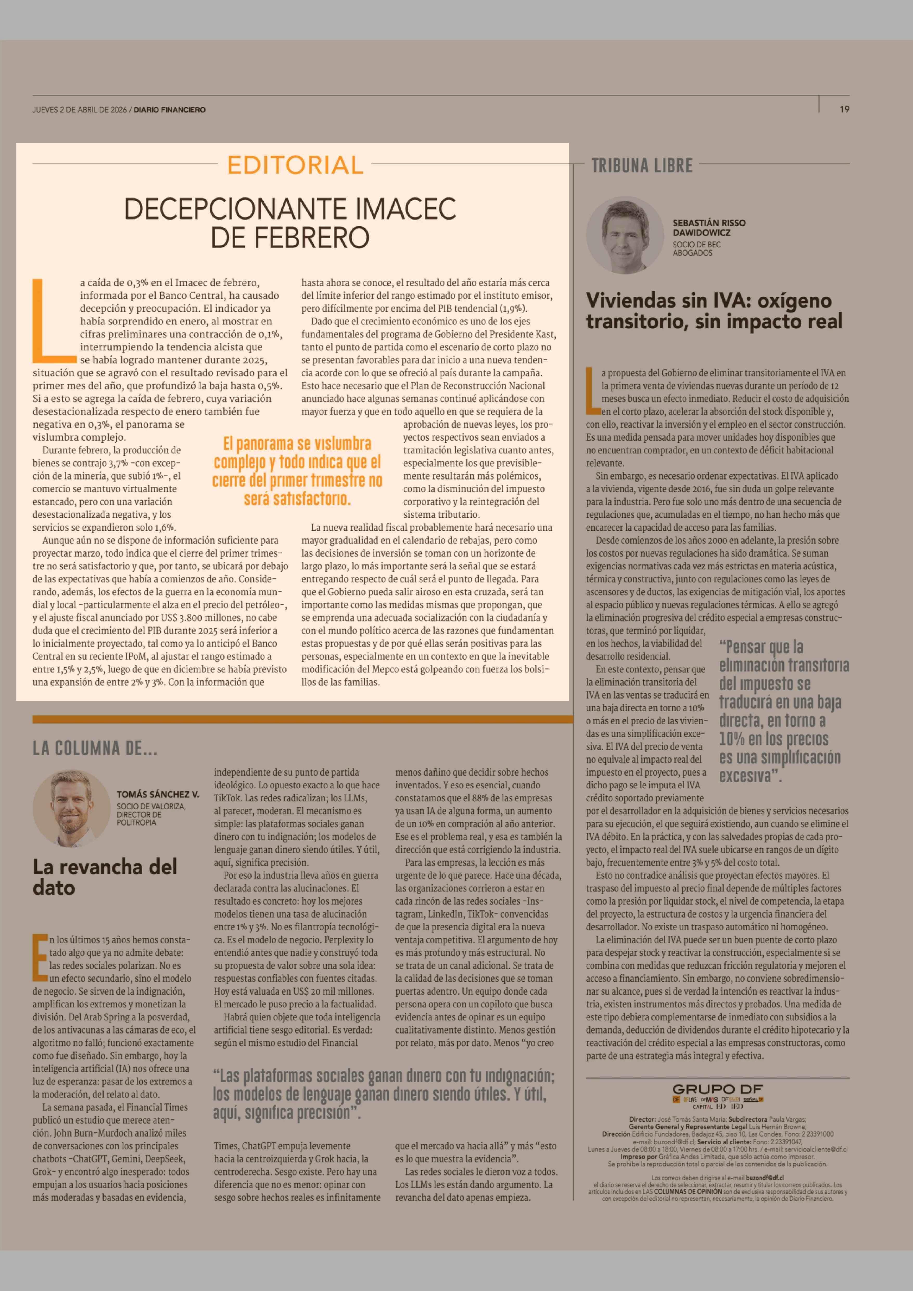 Título: Editorial: DECEPCIONANTE IMACEC DE FEBRERO