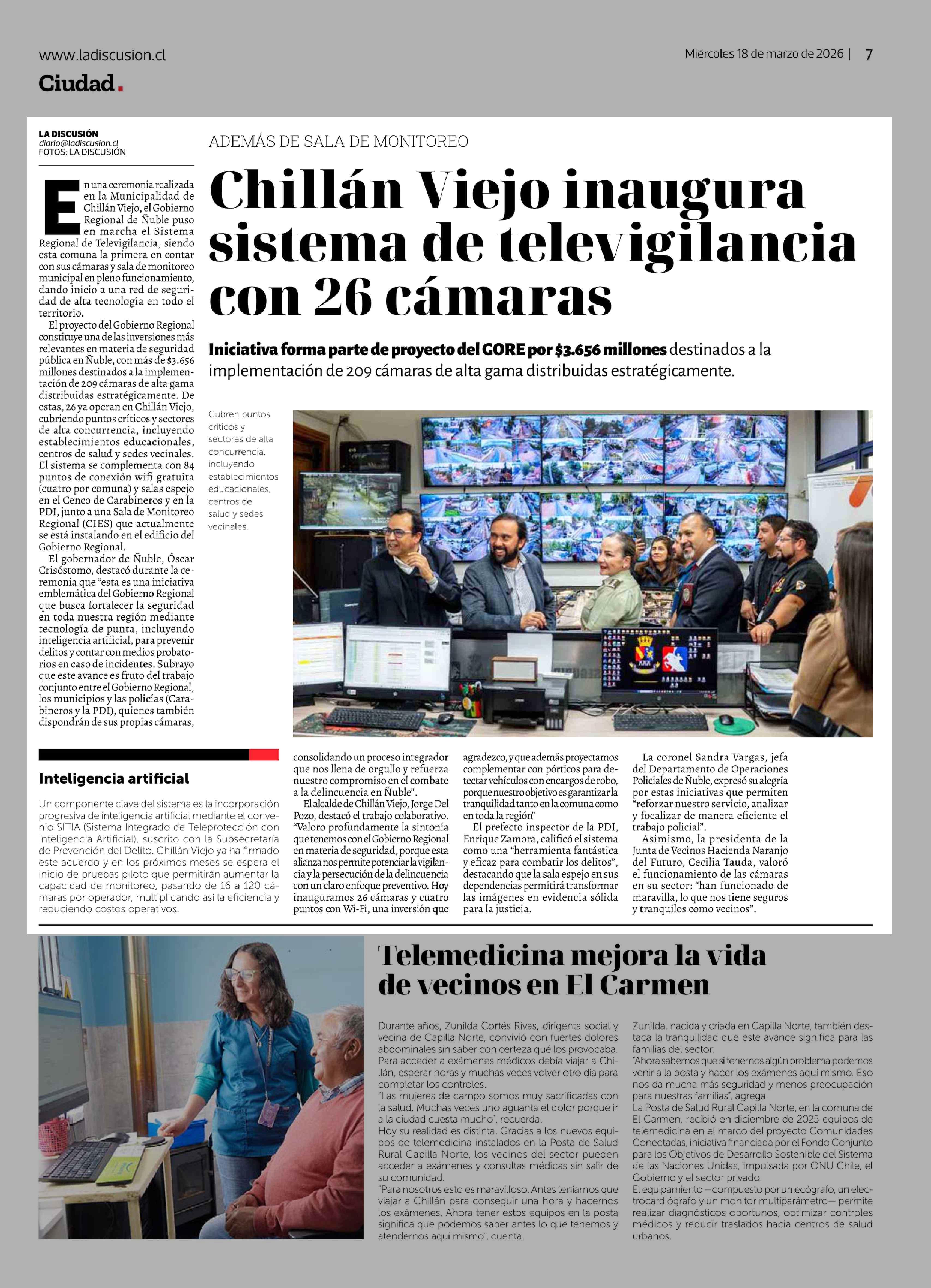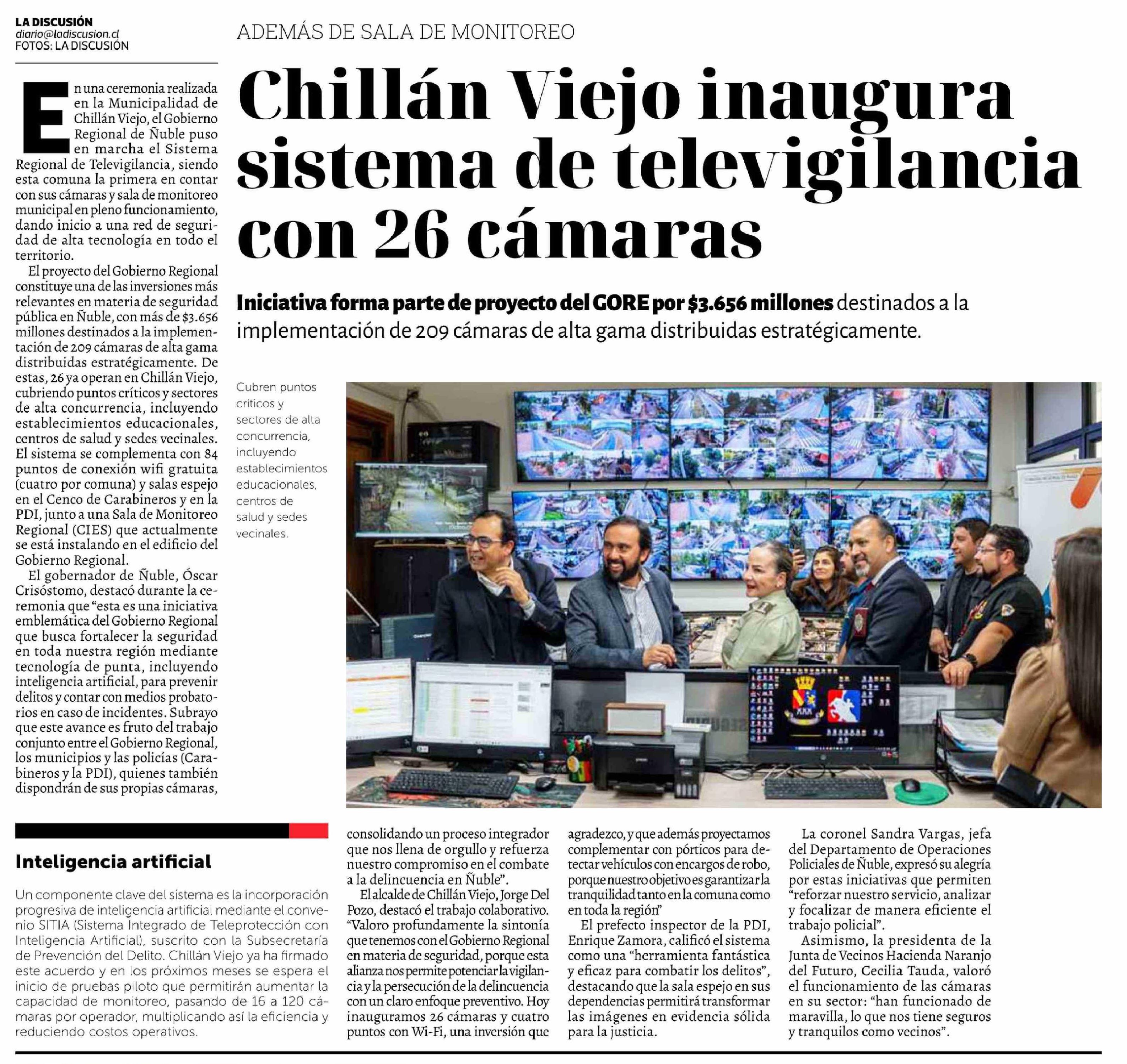 Chillán Viejo inaugura sistema de televigilancia con 26 cámaras 18-03-2026 La Discusión |