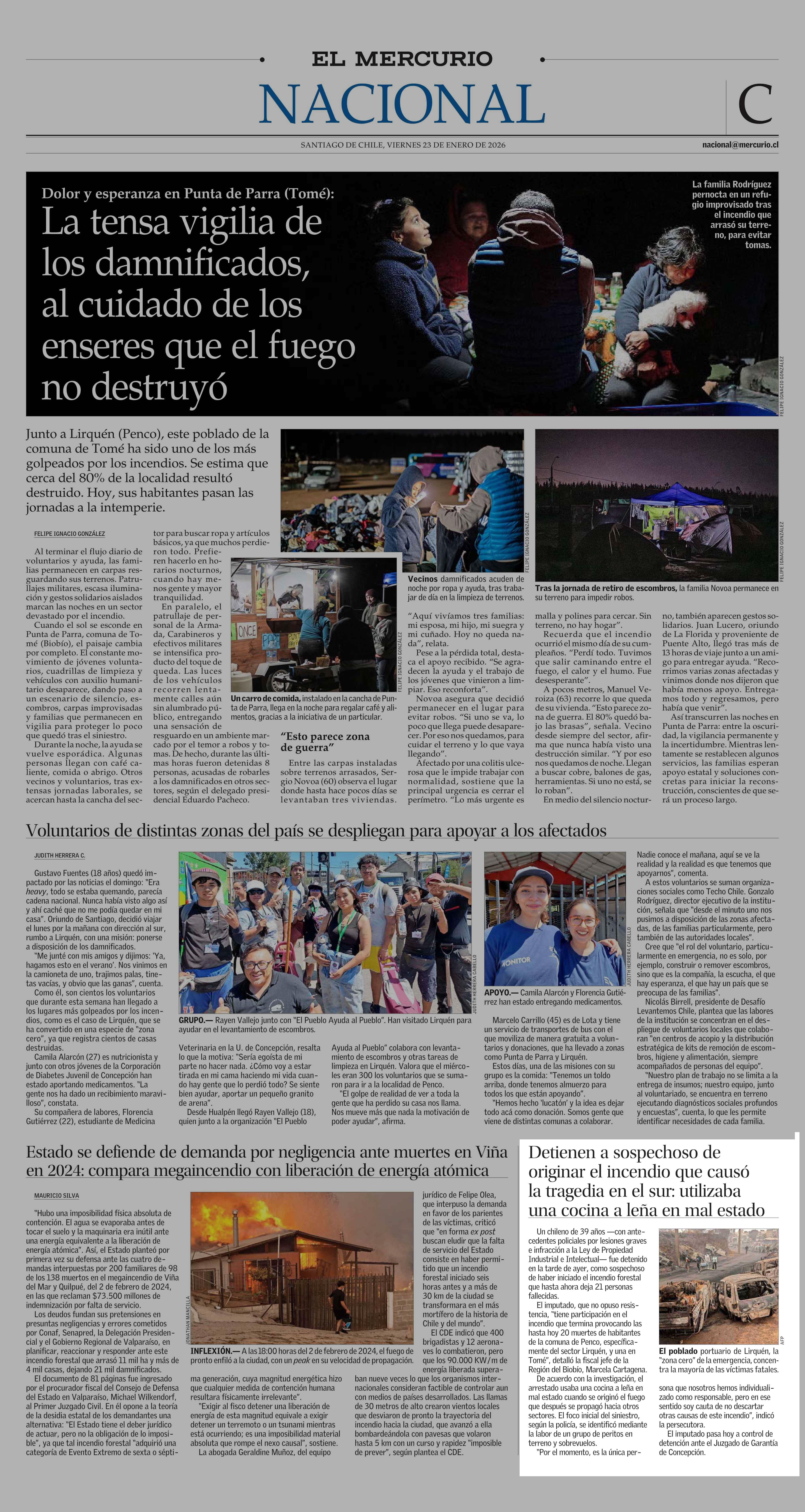 Detienen a sospechoso de originar el incendio que causó la tragedia en el sur: utilizaba una cocina a leña en mal estado 23-01-2026 El Mercurio |