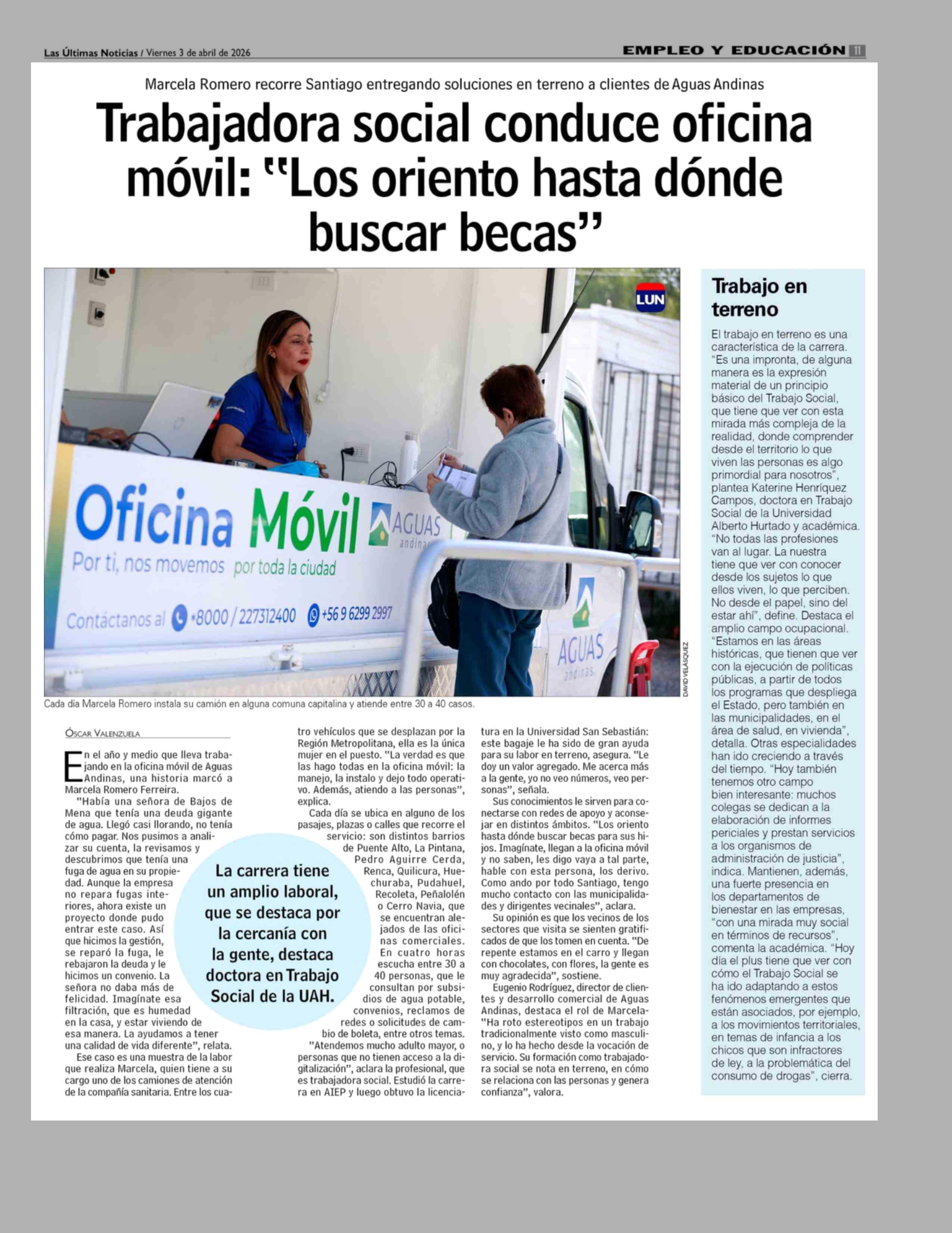 Título: Trabajadora social conduce oficina móvil: "Los oriento hasta dónde buscar becas""
