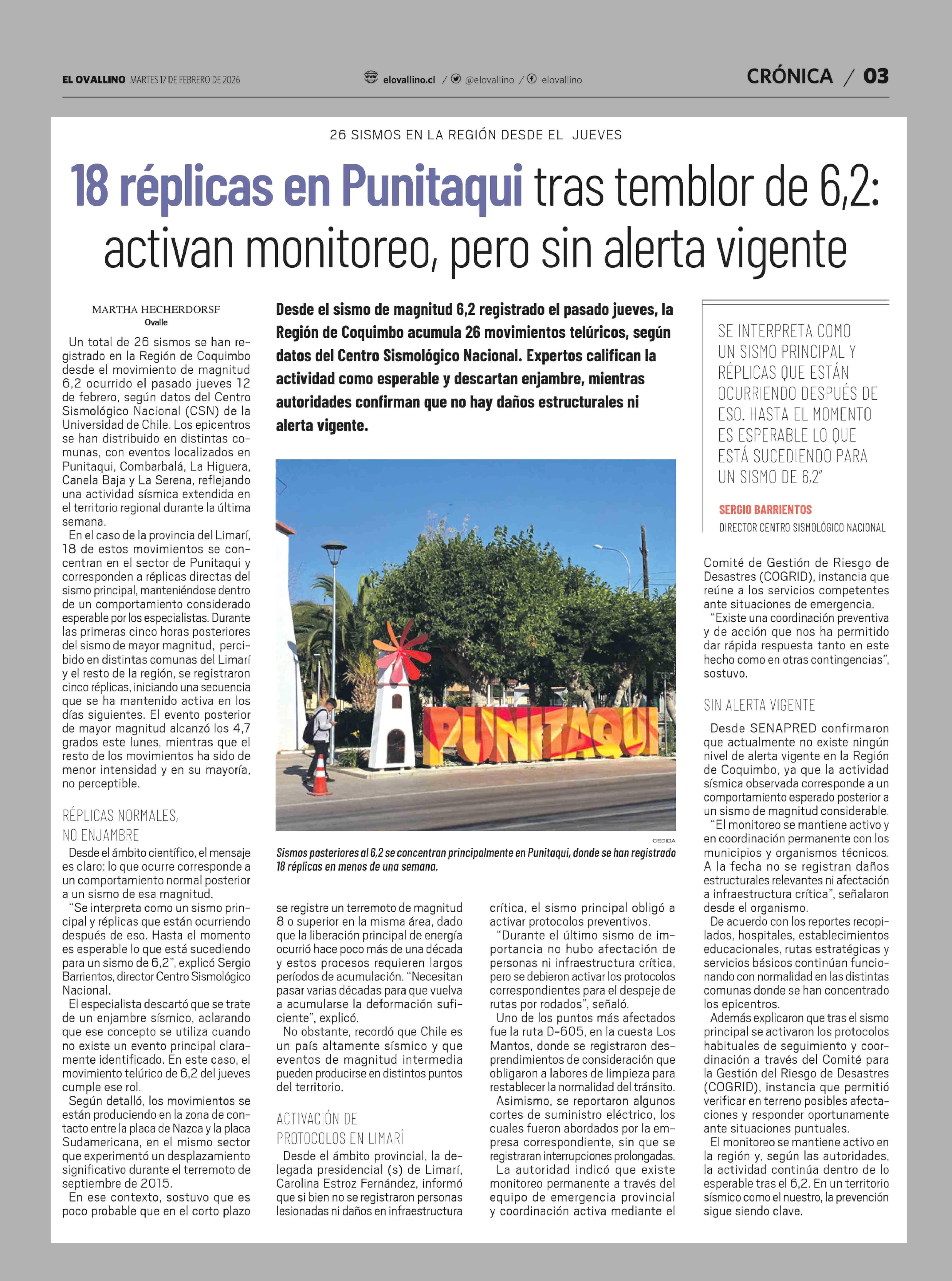 18 Réplicas en Punitaqui tras temblor de 6,2: activan monitoreo, pero sin alerta vigente 17-02-2026 El Ovallino |