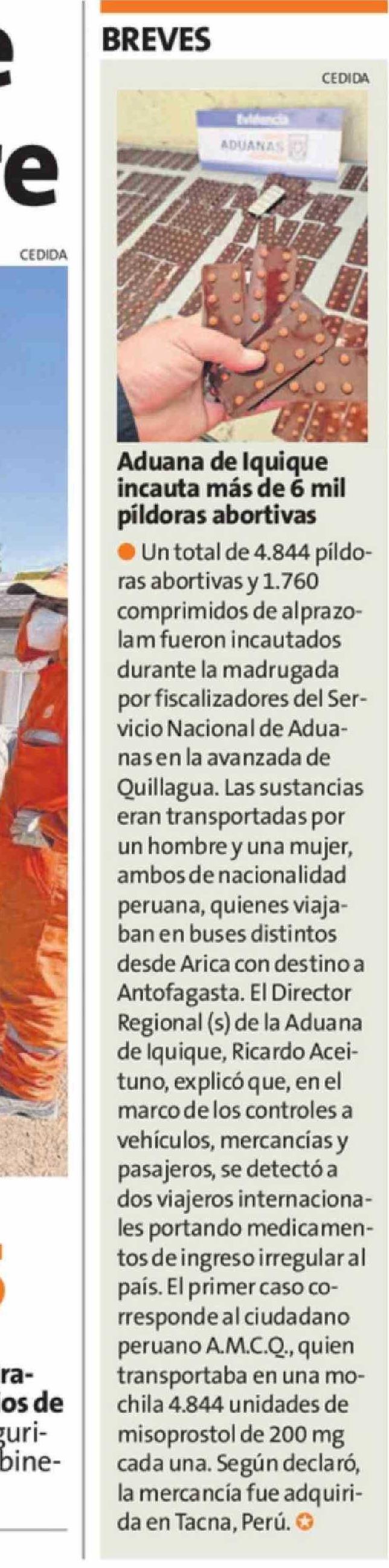 | Título: | Aduana de Iquique incauta más de 6 mil píldoras abortivas |
