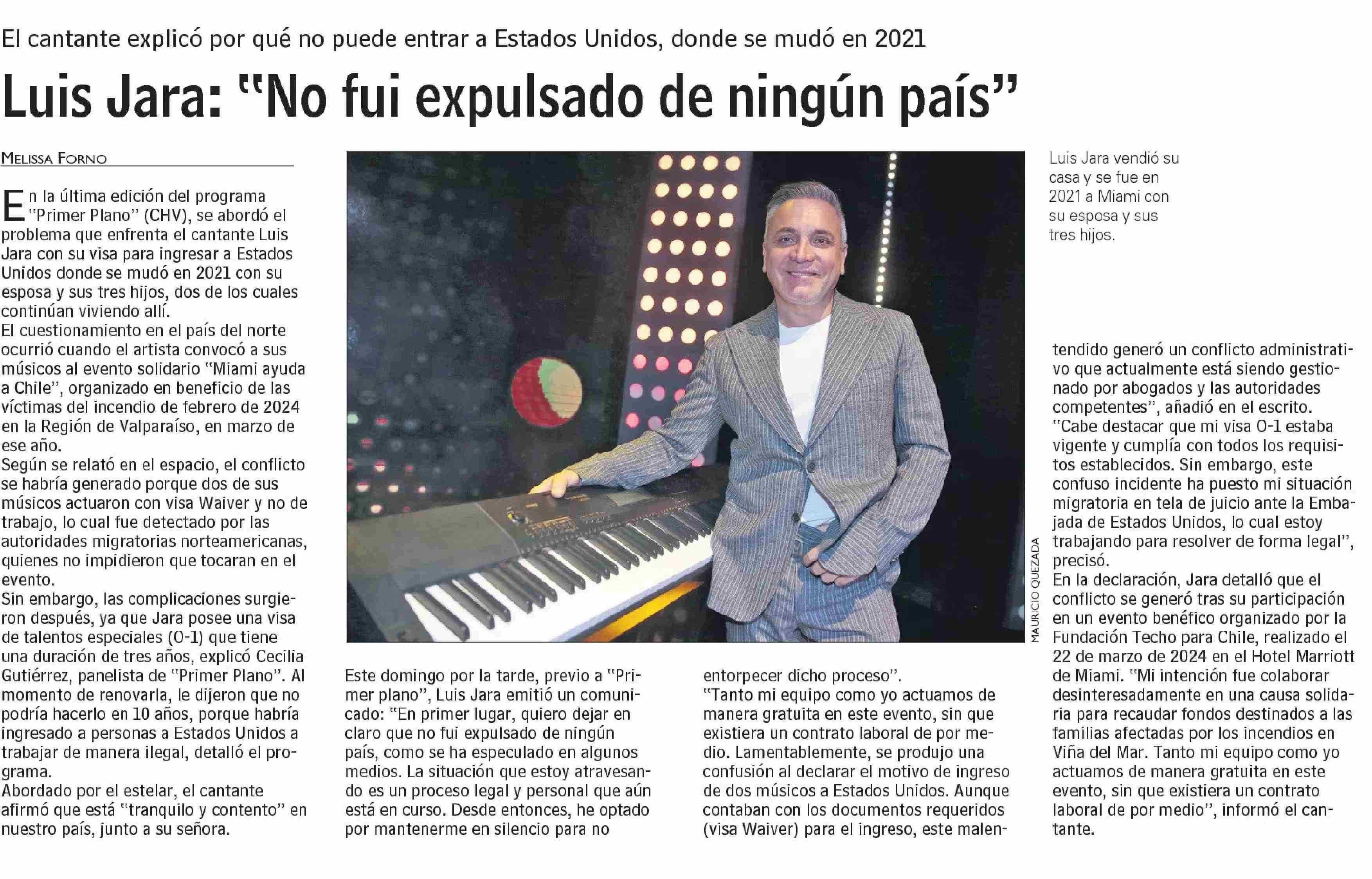 Luis Jara: No fui expulsado de ningún país” 20-01-2025 Las Últimas Noticias |