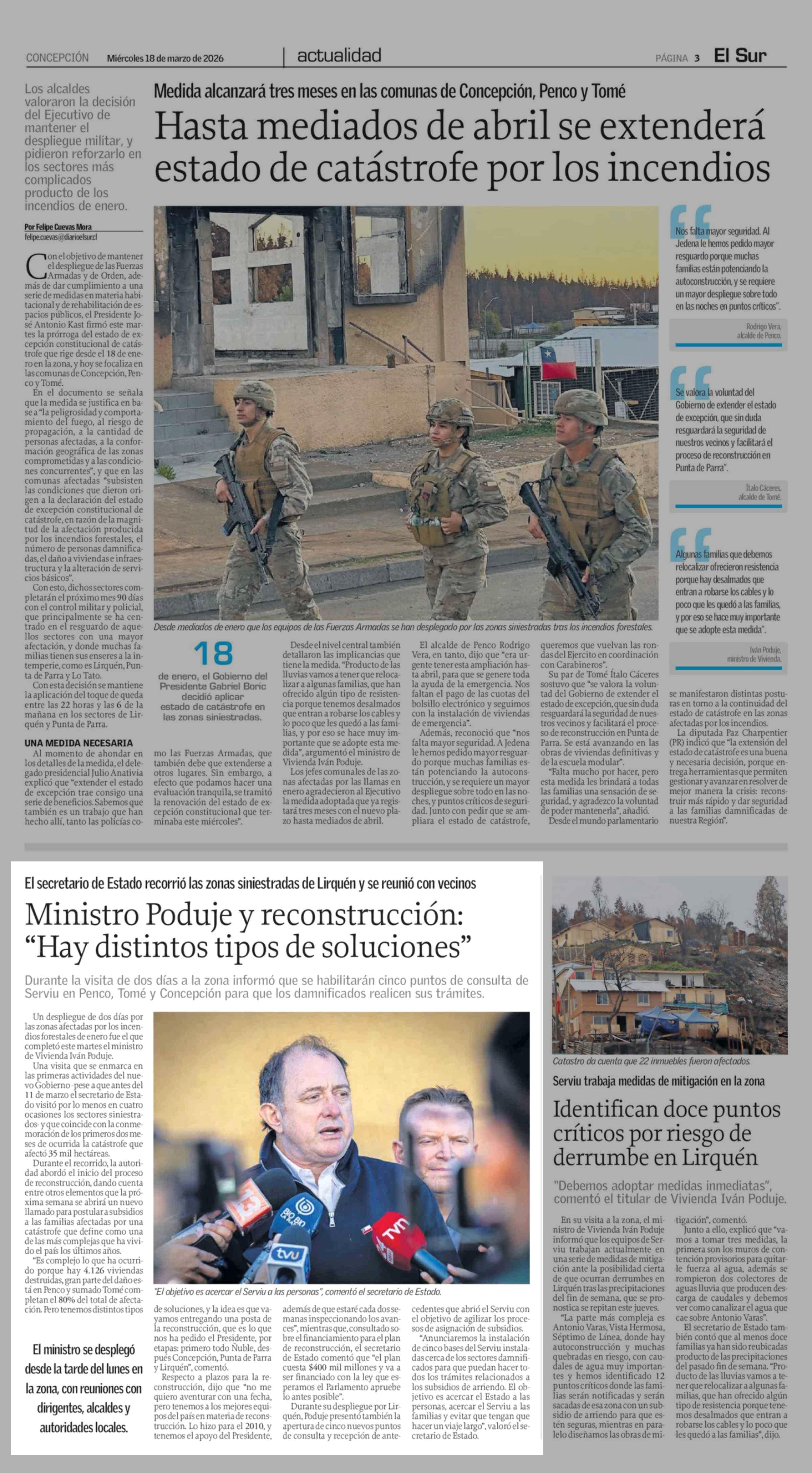 Ministro Poduje y reconstrucción: "Hay distintos tipos de soluciones" 18-03-2026 El Sur |