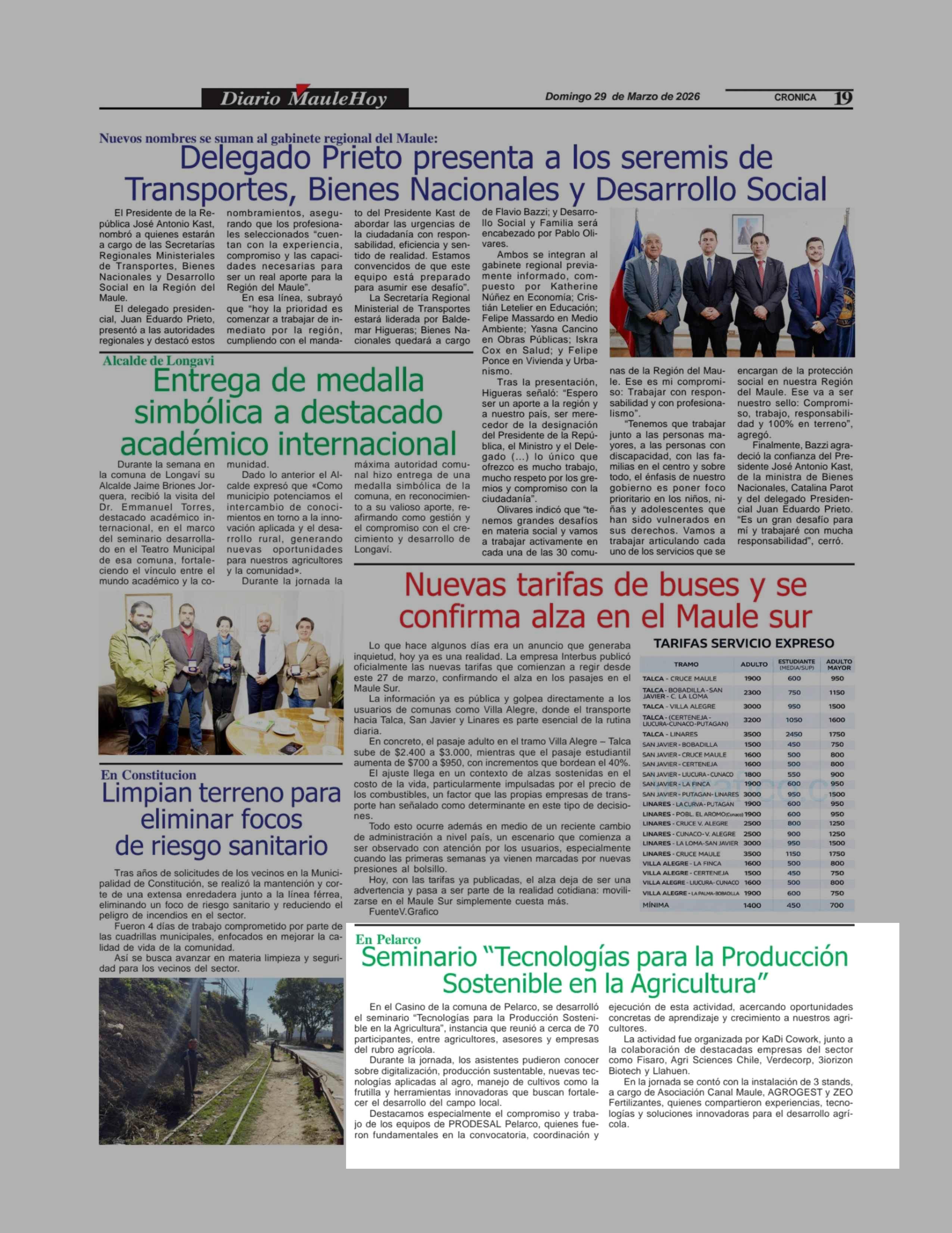 Seminario “Tecnologías para la Producción Sostenible en la Agricultura” 29-03-2026 Maule Hoy |