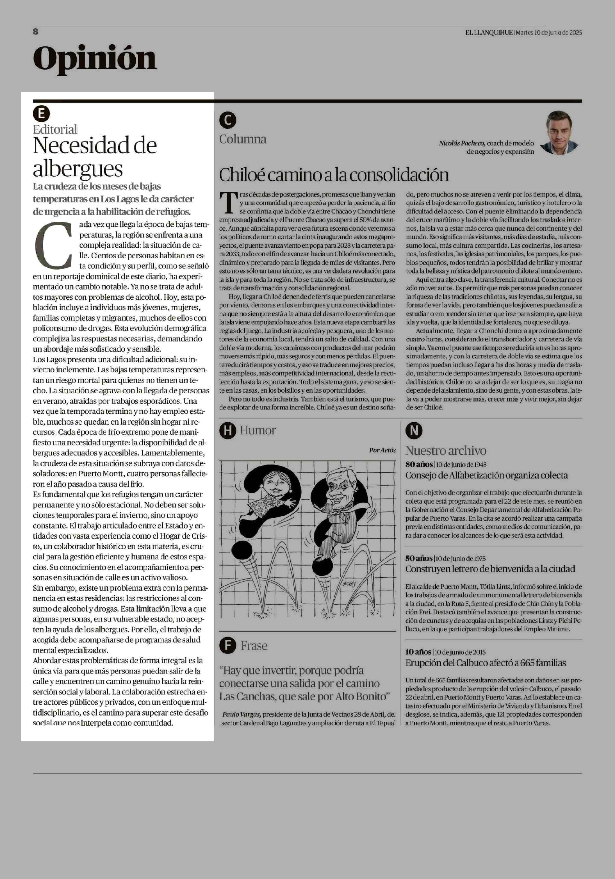 Editorial: Necesidad de albergues 10-06-2025 El Llanquihue |