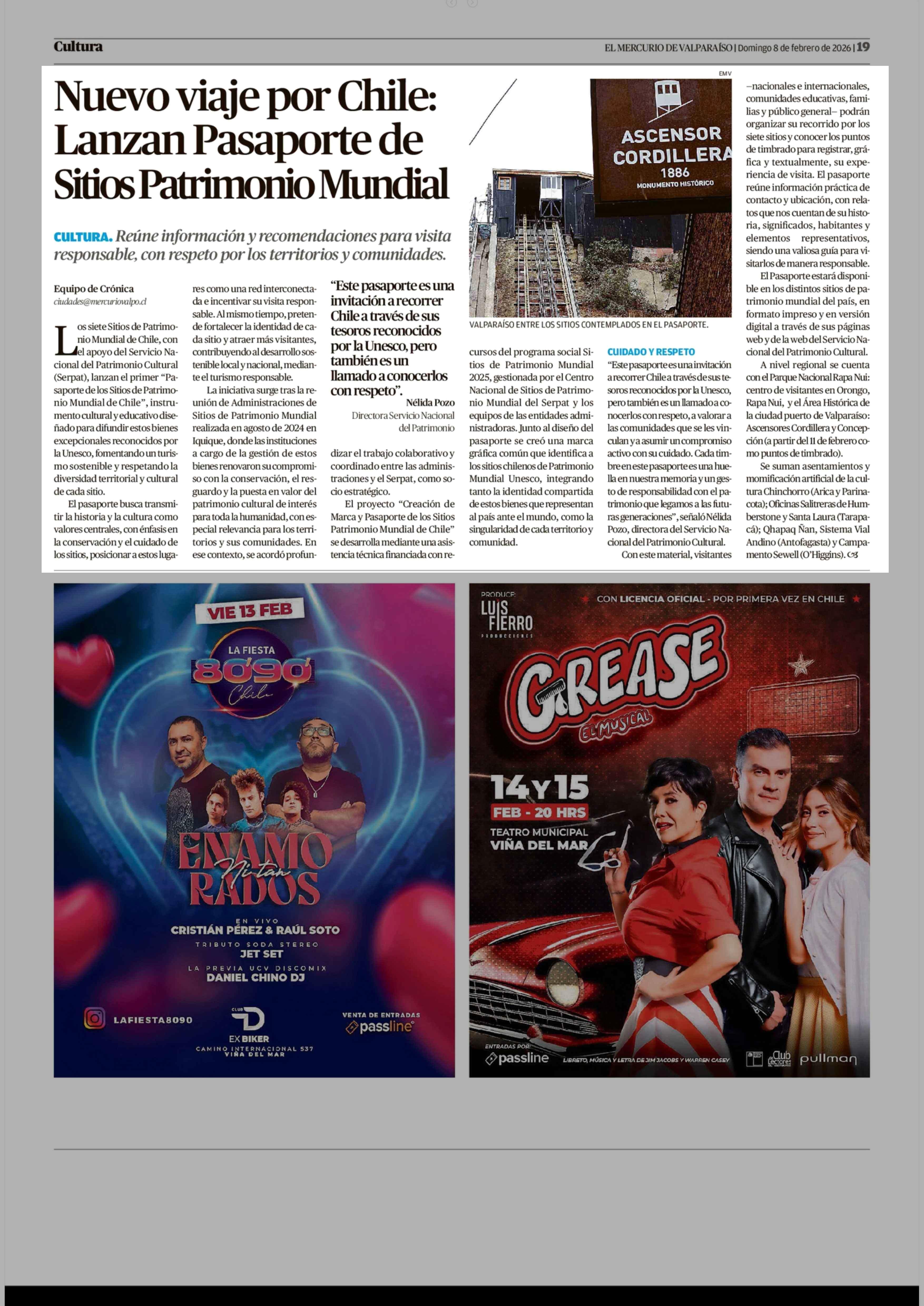 Nuevo viaje por Chile: Lanzan Pasaporte de Sitios Patrimonio Mundial 08-02-2026 El Mercurio de Valparaíso |