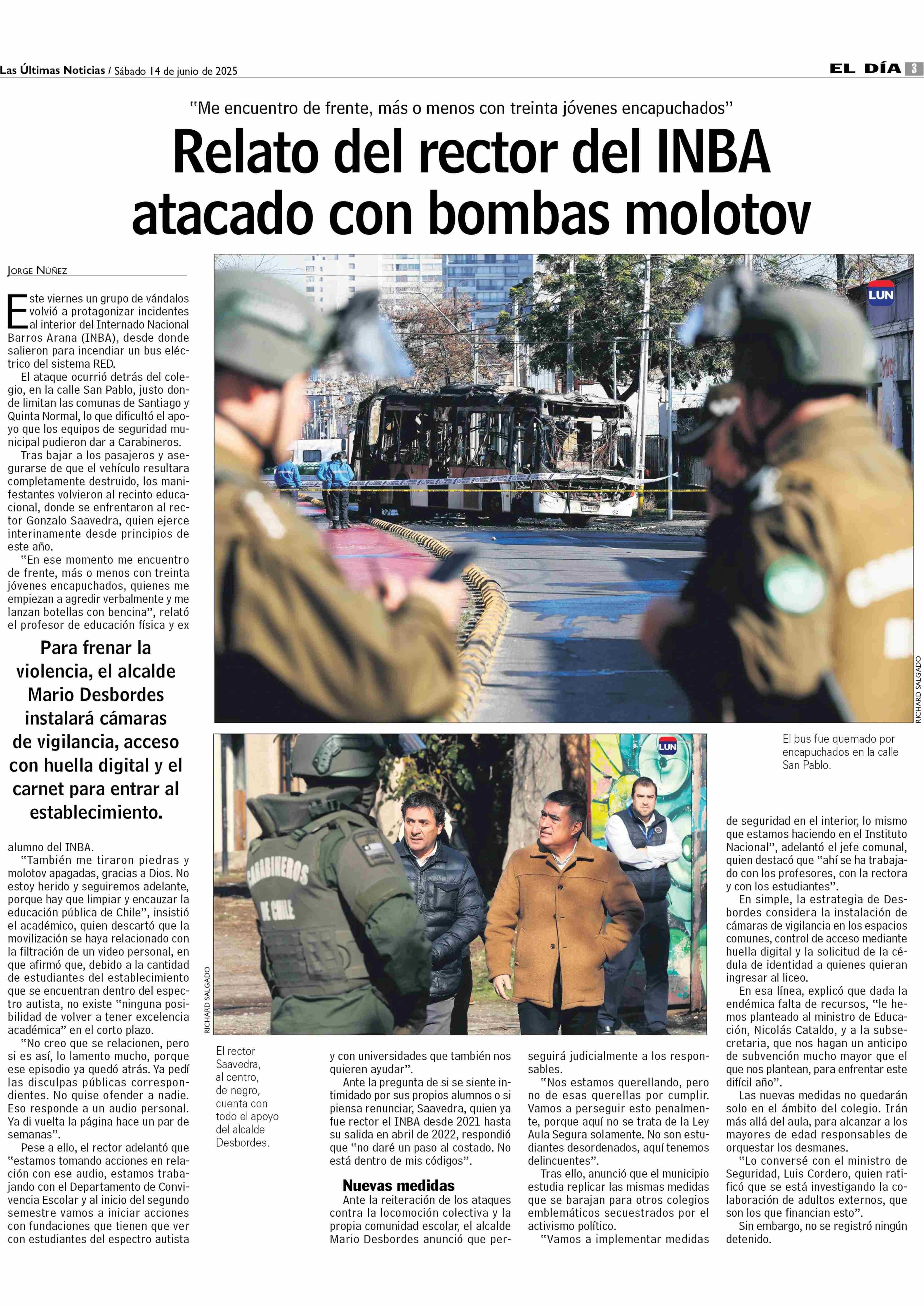 Relato del rector del INBA atacado con bombas molotov 14-06-2025 Las Últimas Noticias |