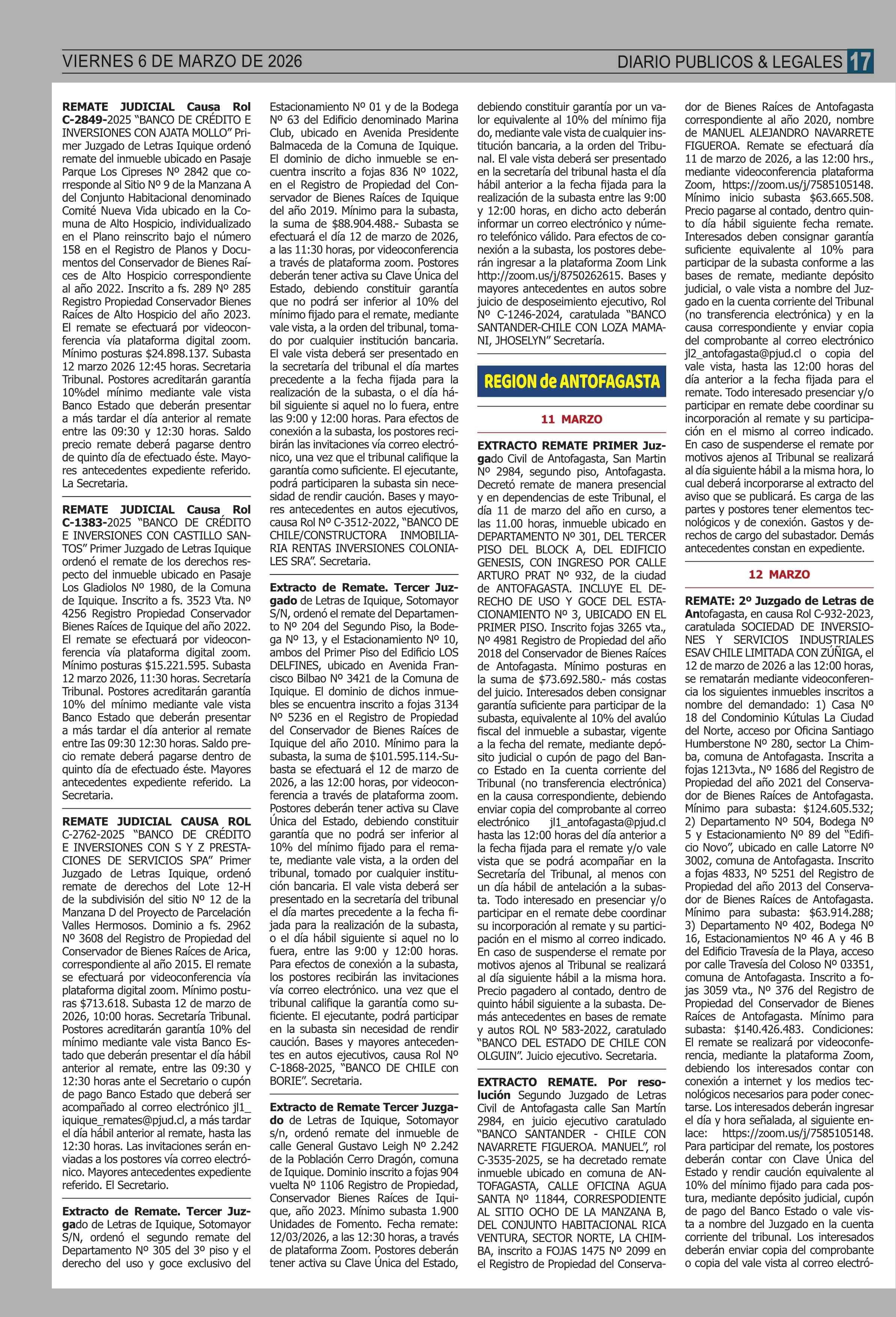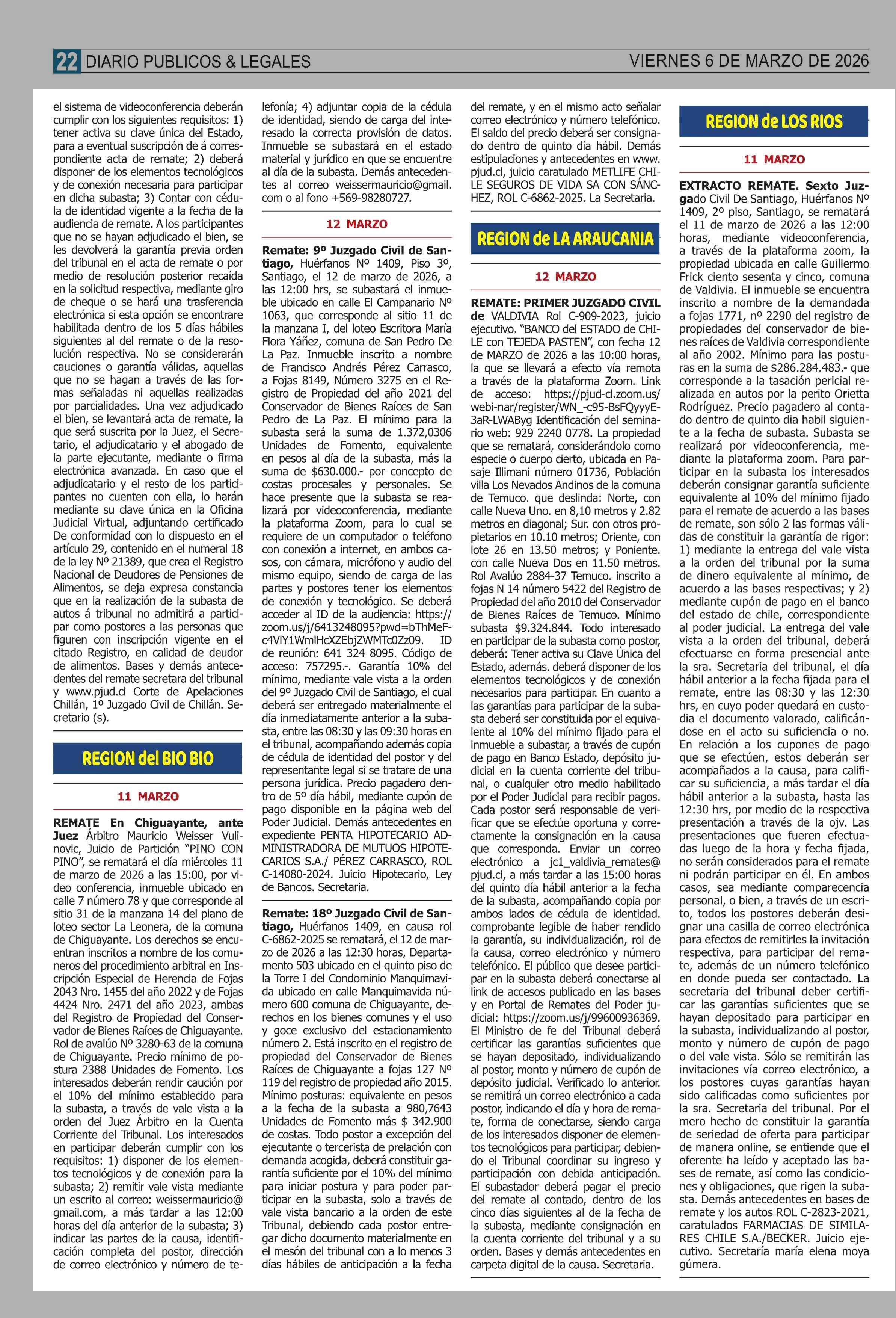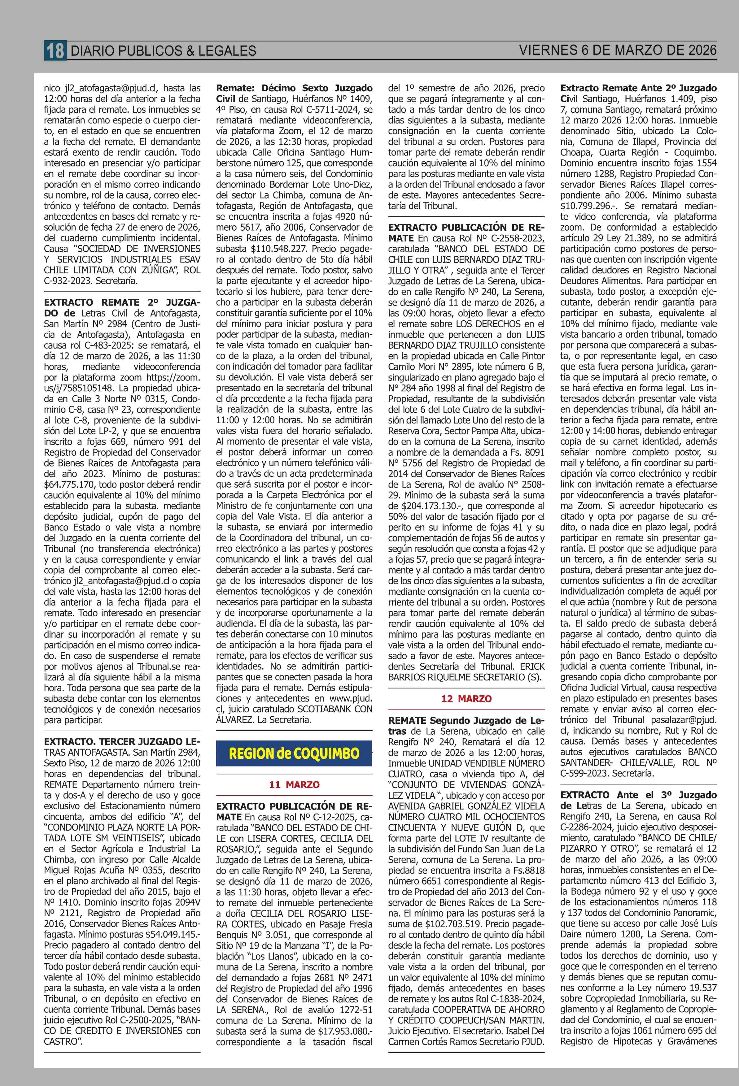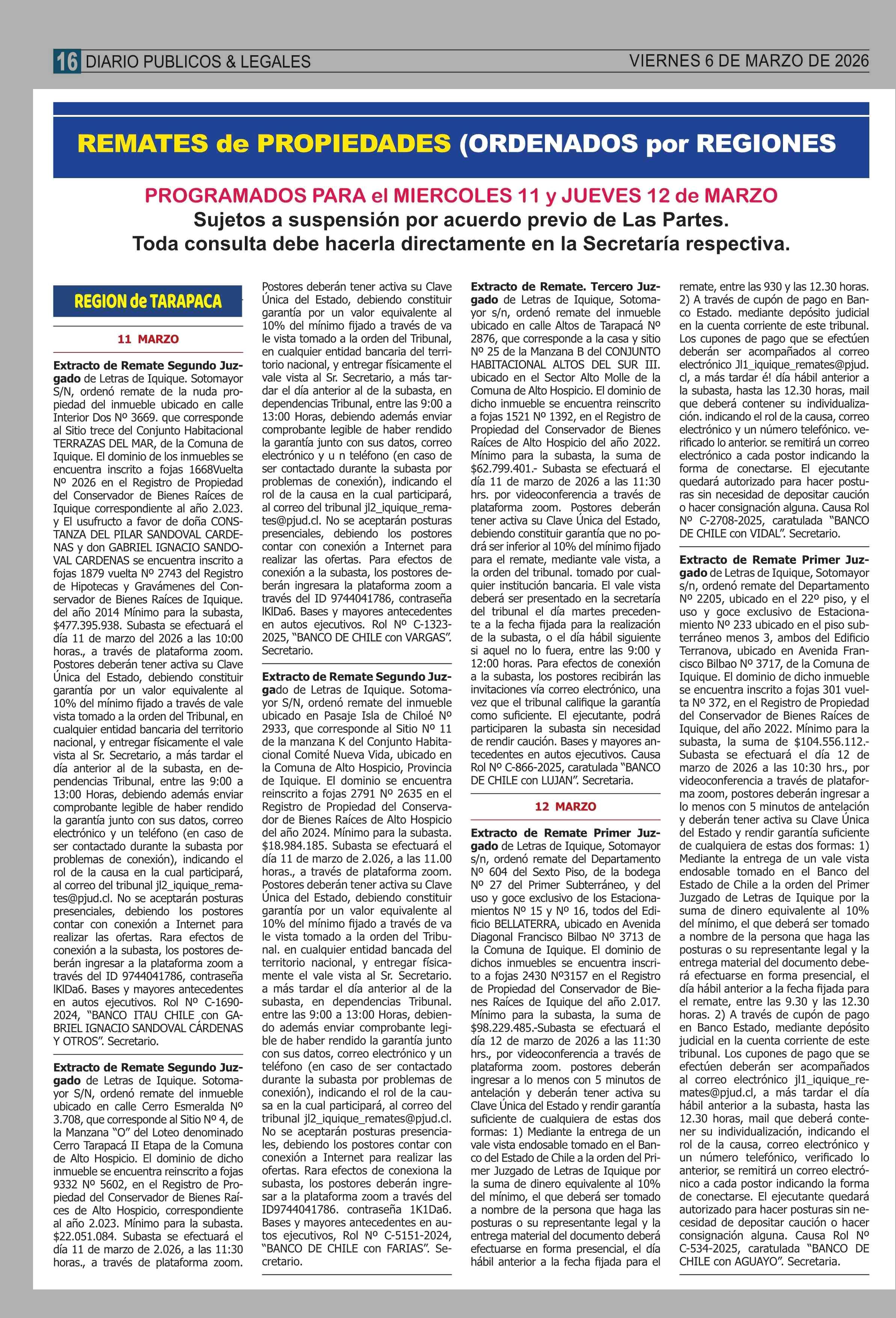 REMATES: REMATES de PROPIEDADES (ORDENADOS por REGIONES 06-03-2026 P&L Públicos y Legales |
