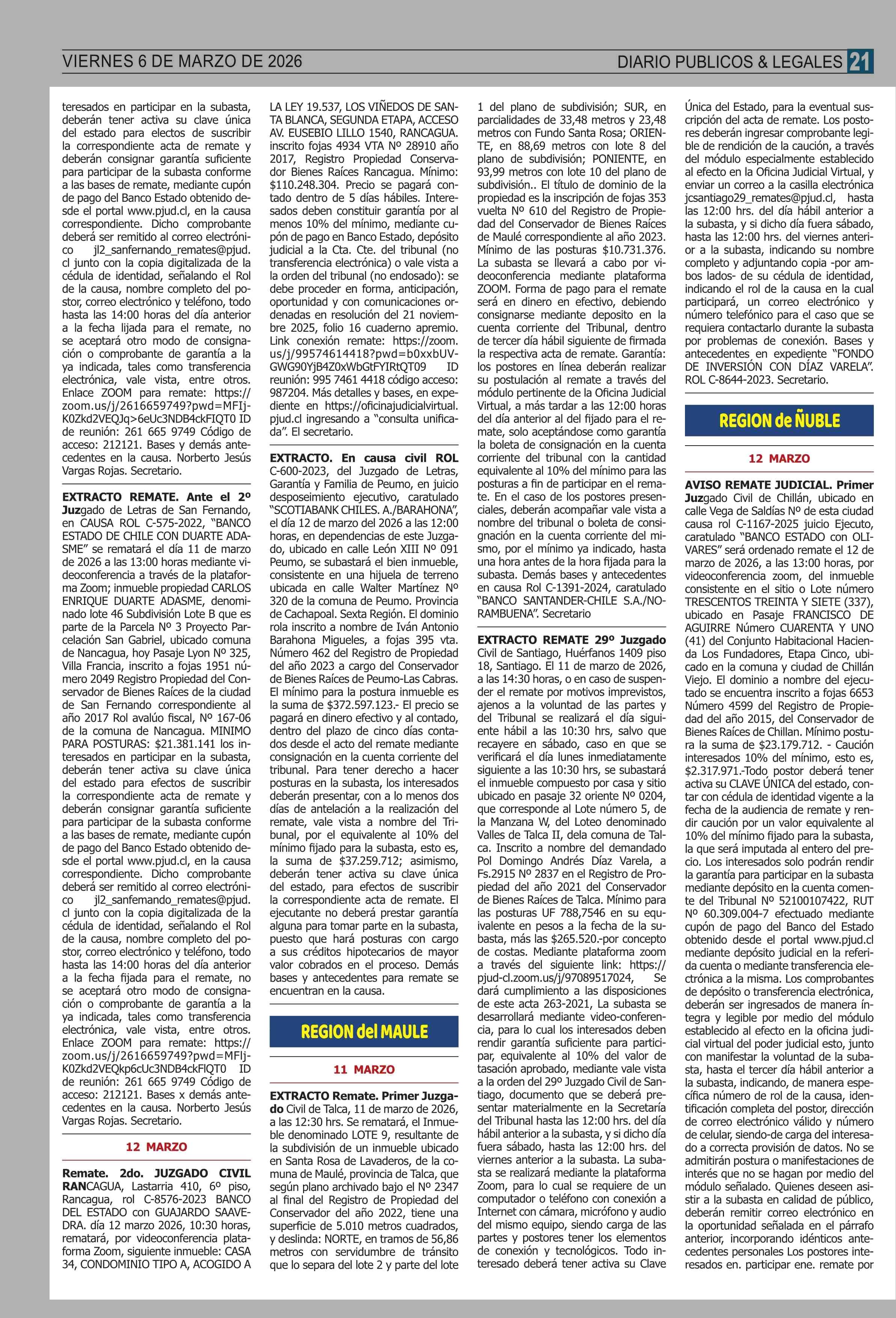 | Título: | REMATES: REMATES de PROPIEDADES (ORDENADOS por REGIONES |