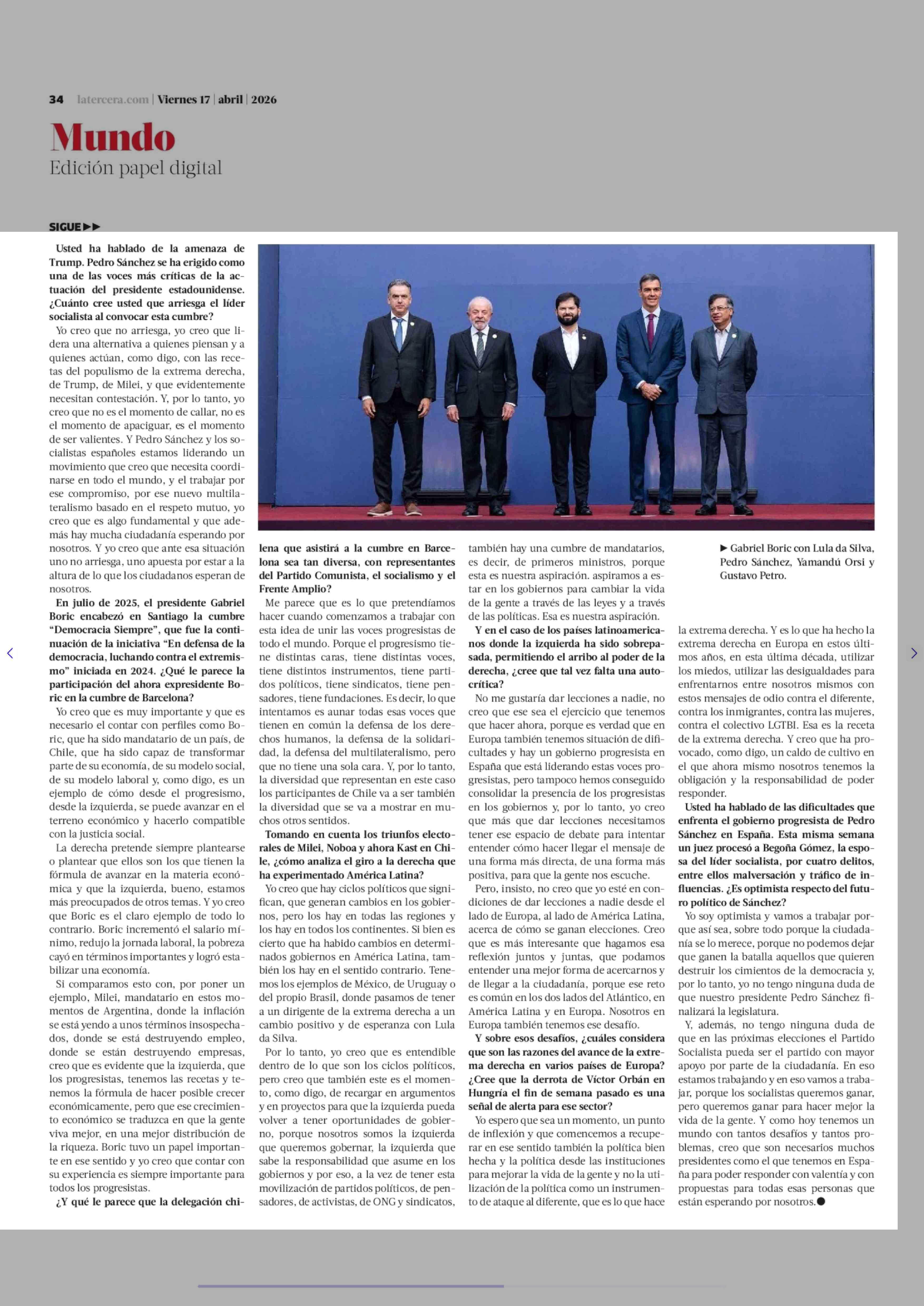 Título: Iratxe García, eurodiputada española: "Creo que es necesario el contar con perfiles como Boric en la cumbre progresista de Barcelona"