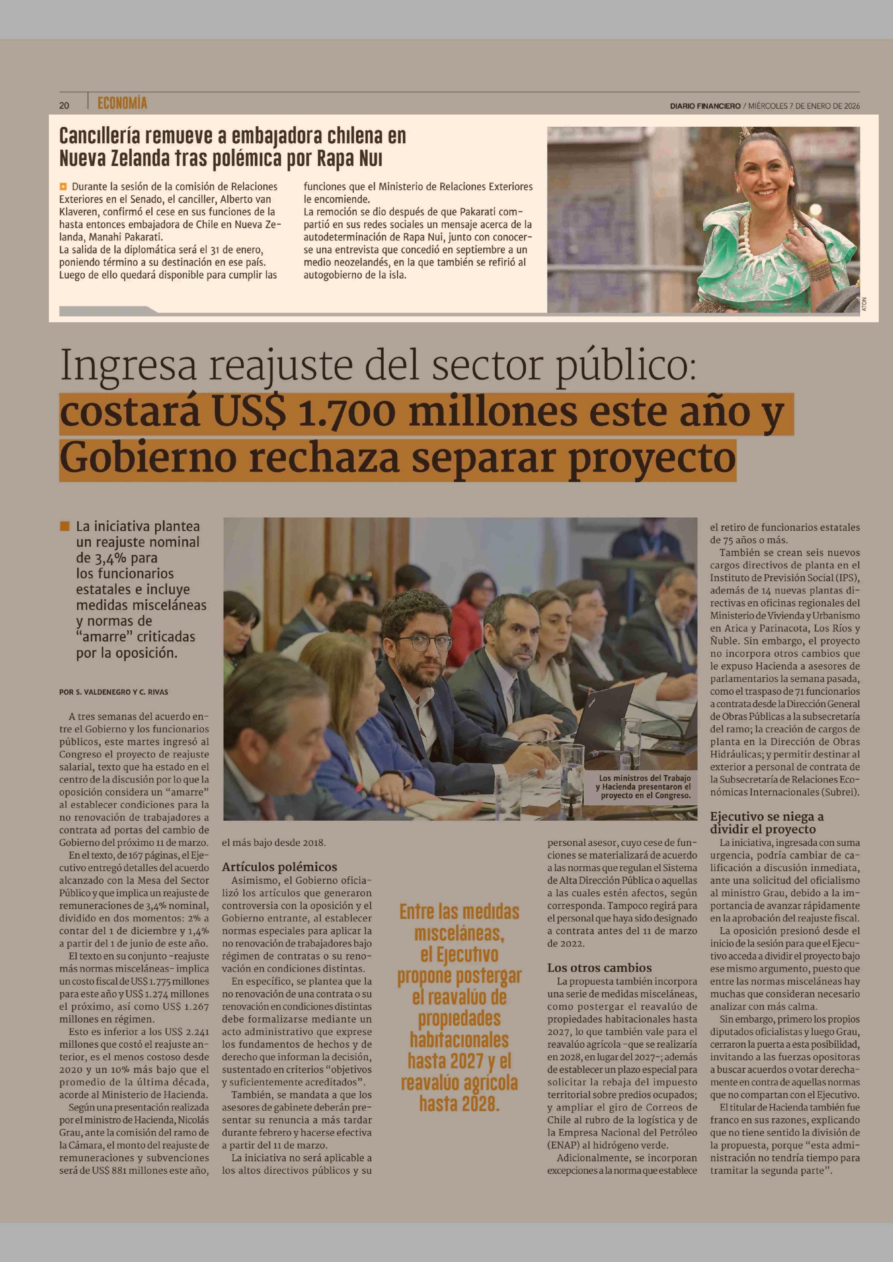 Cancillería remueve a embajadora chilena en Nueva Zelanda tras polémica por Rapa Nui 07-01-2026 Diario Financiero |