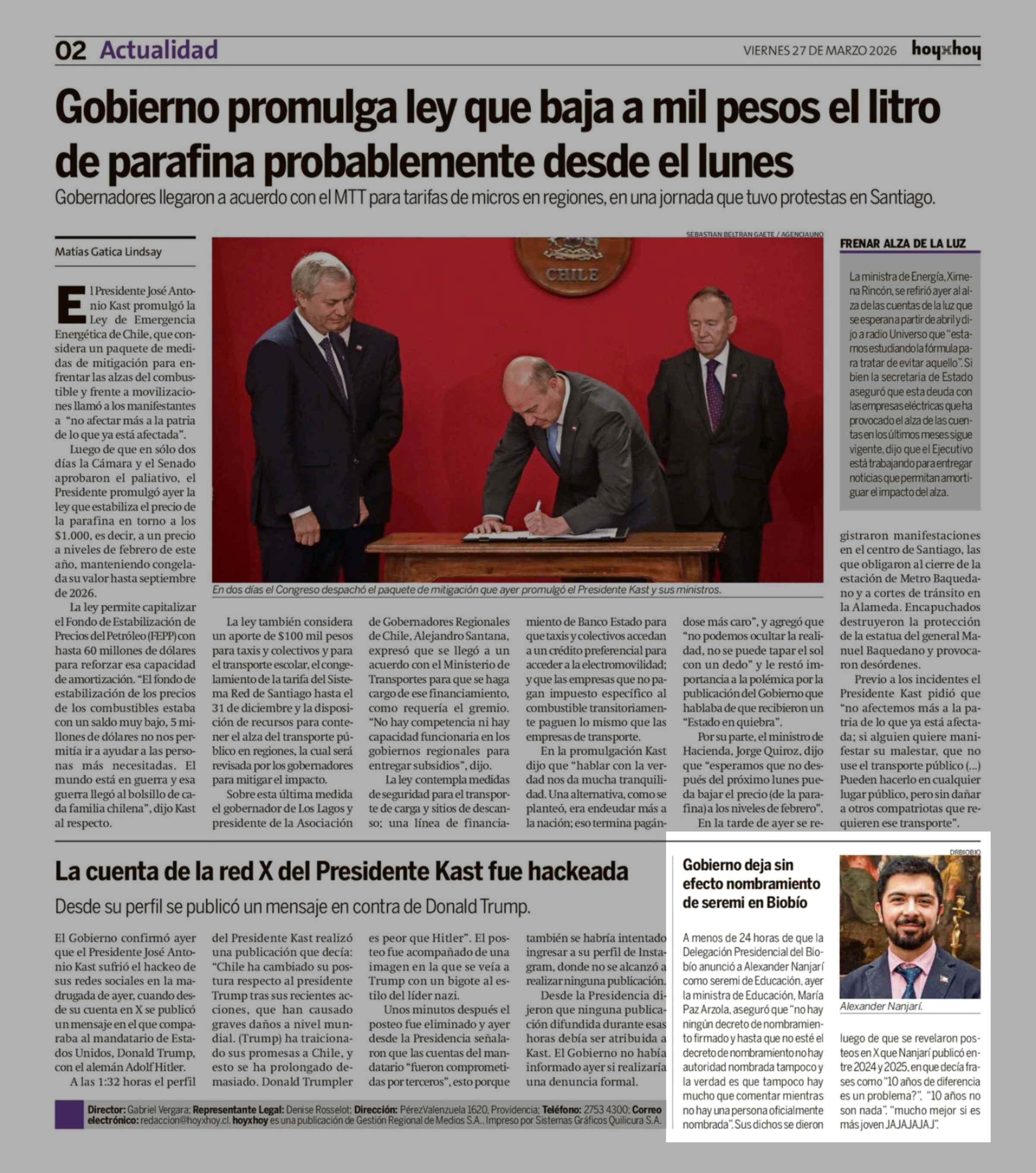Título: Gobierno deja sin efecto nombramiento de seremi en Biobio