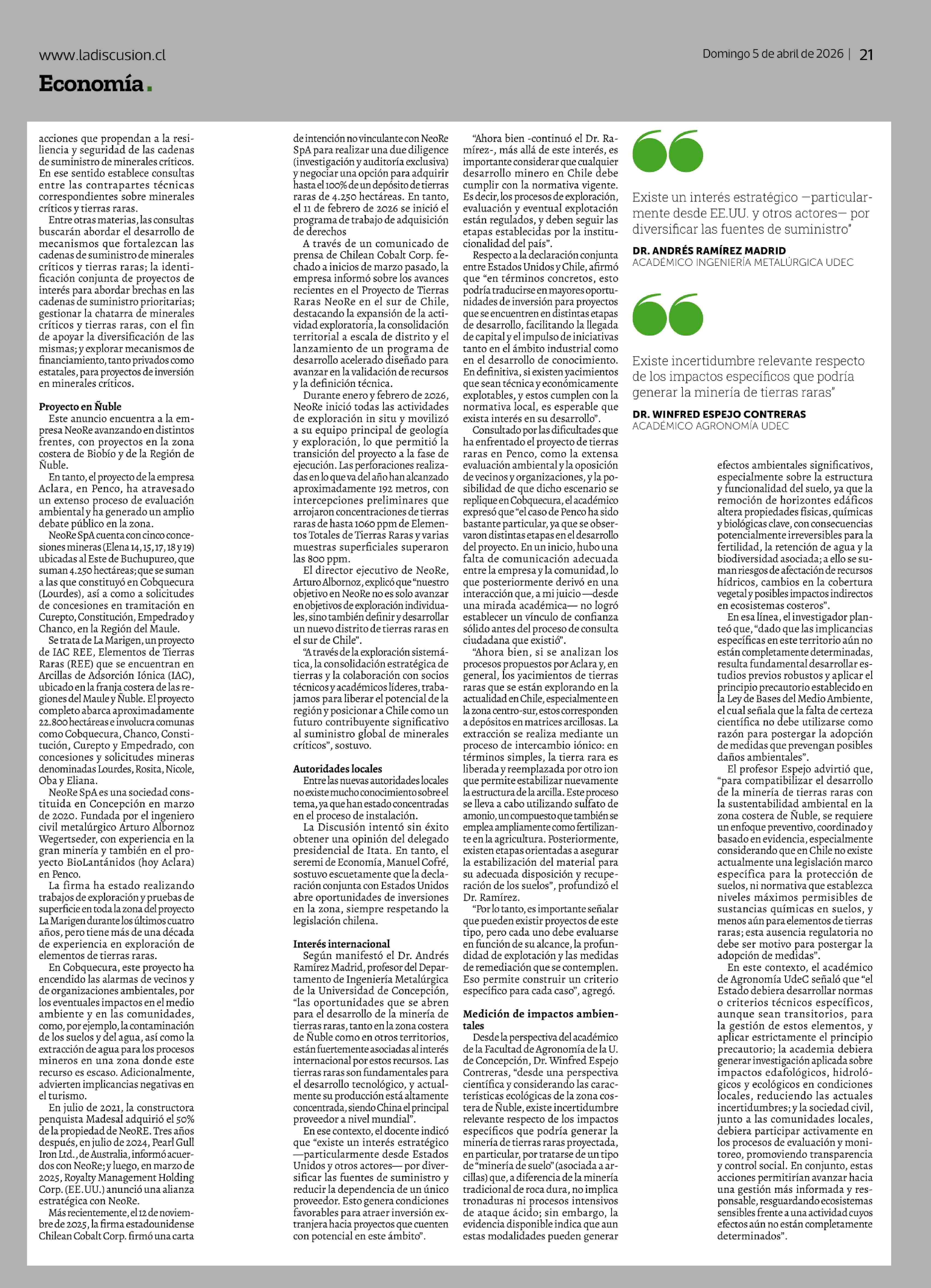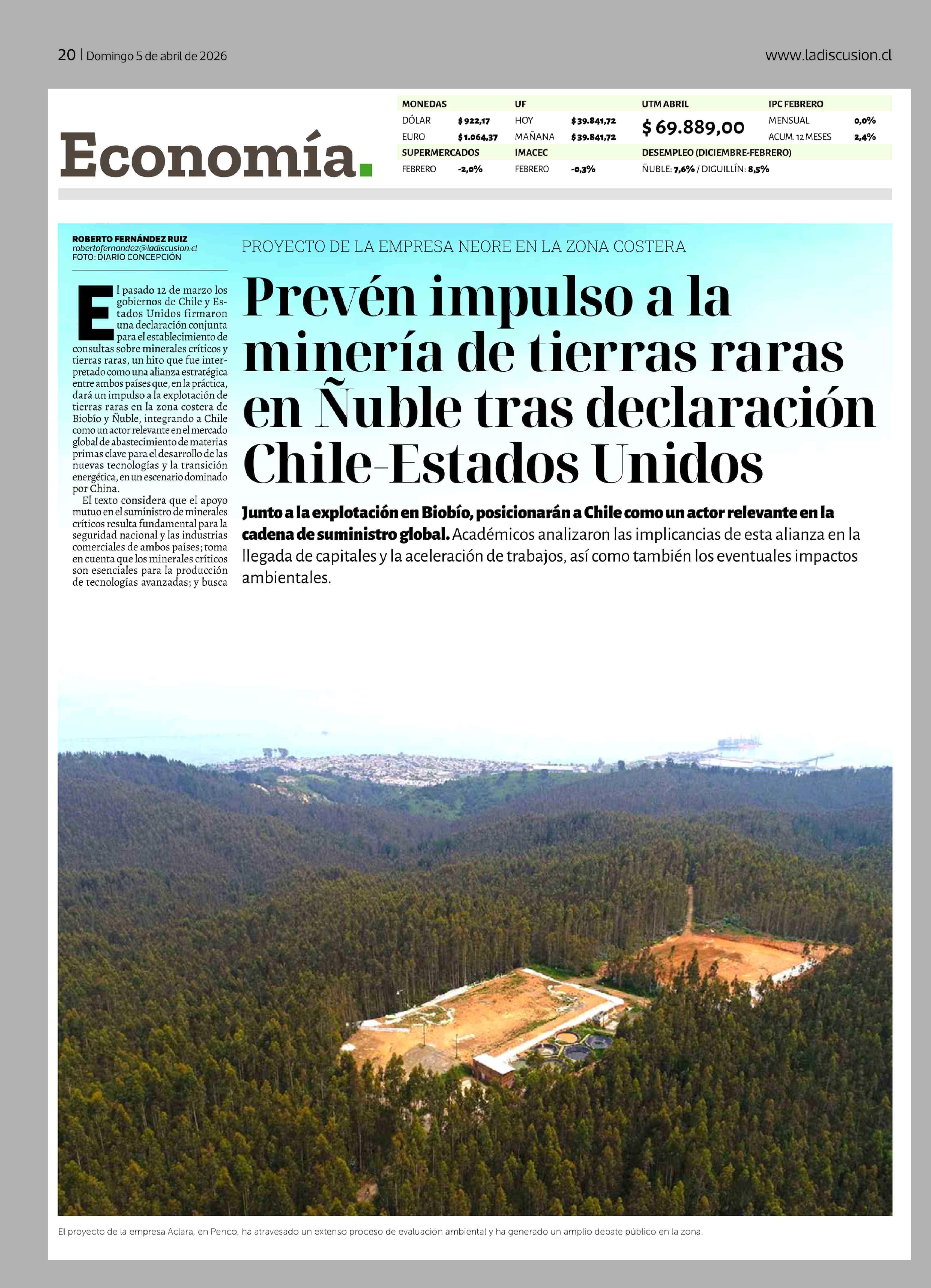 Título: Prevén impulso a la minería de tierras raras en Ñuble tras declaración Chile-Estados Unidos