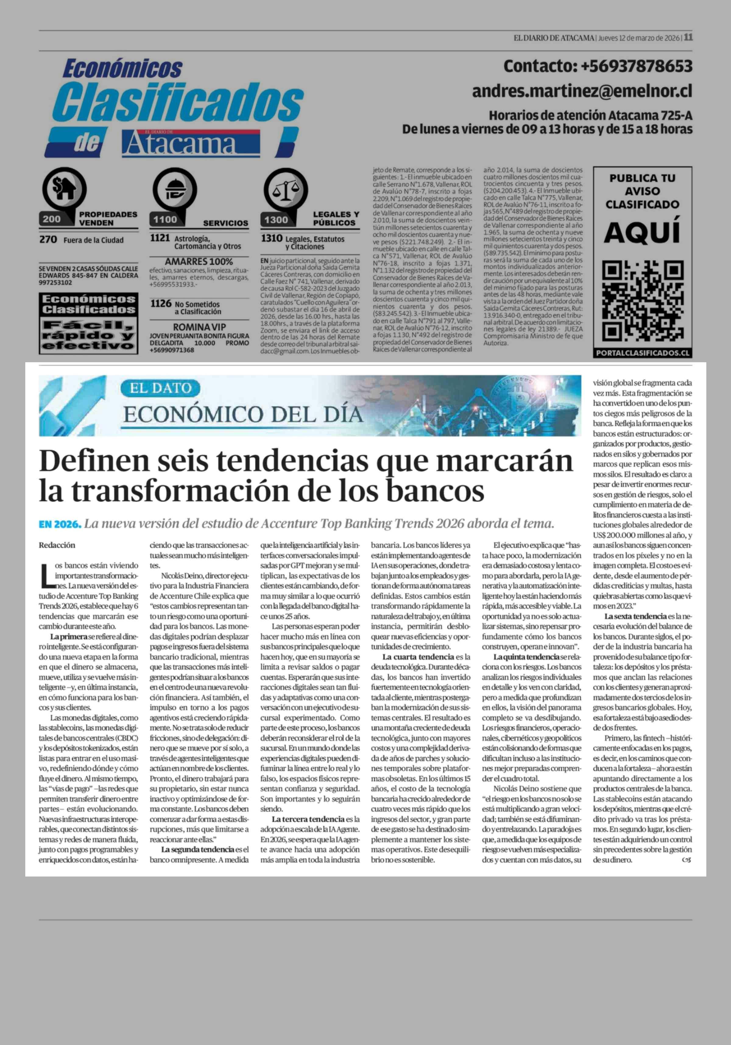 Definen seis tendencias que marcarán la transformación de los bancos 12-03-2026 El Diario de Atacama |