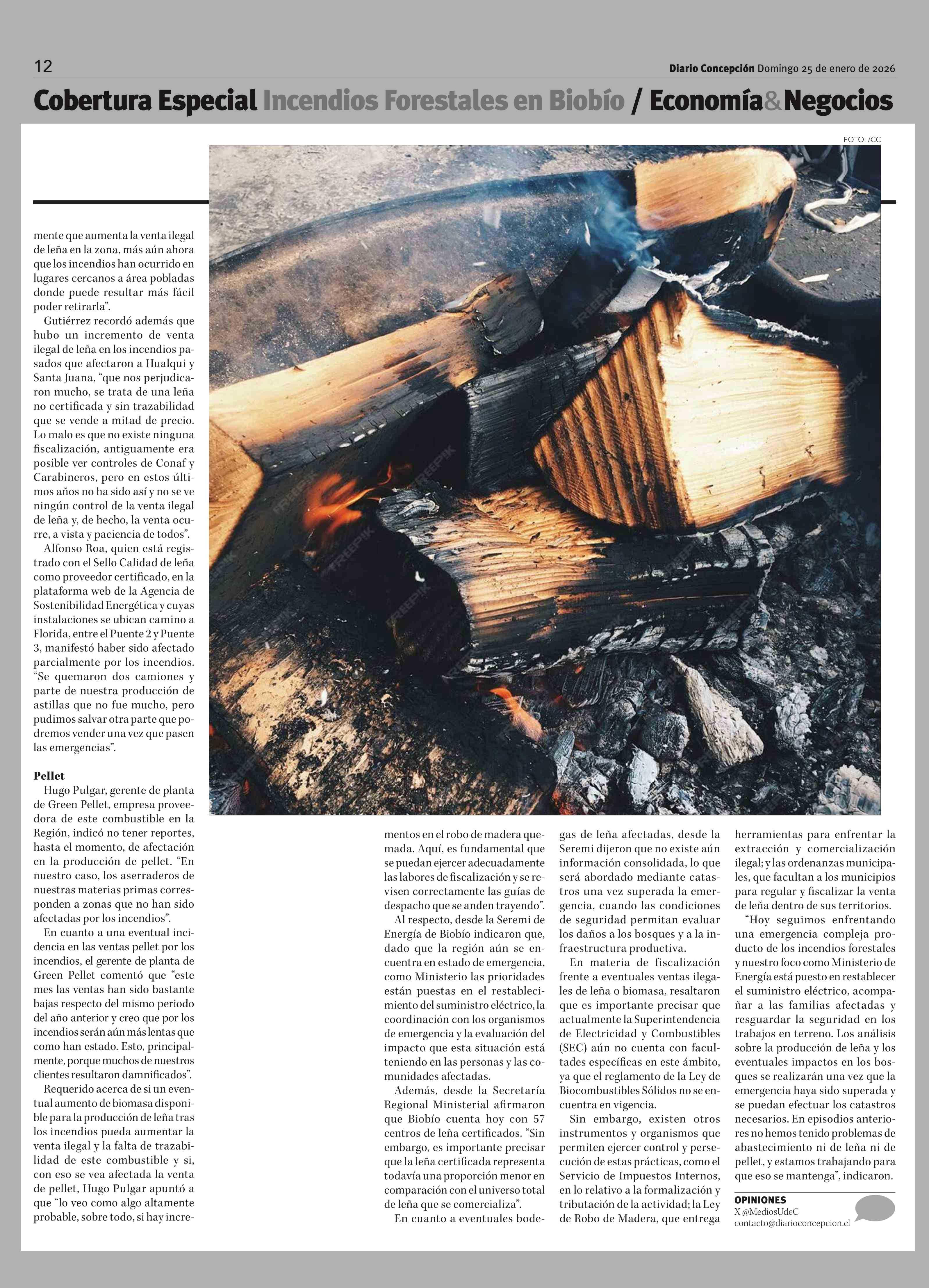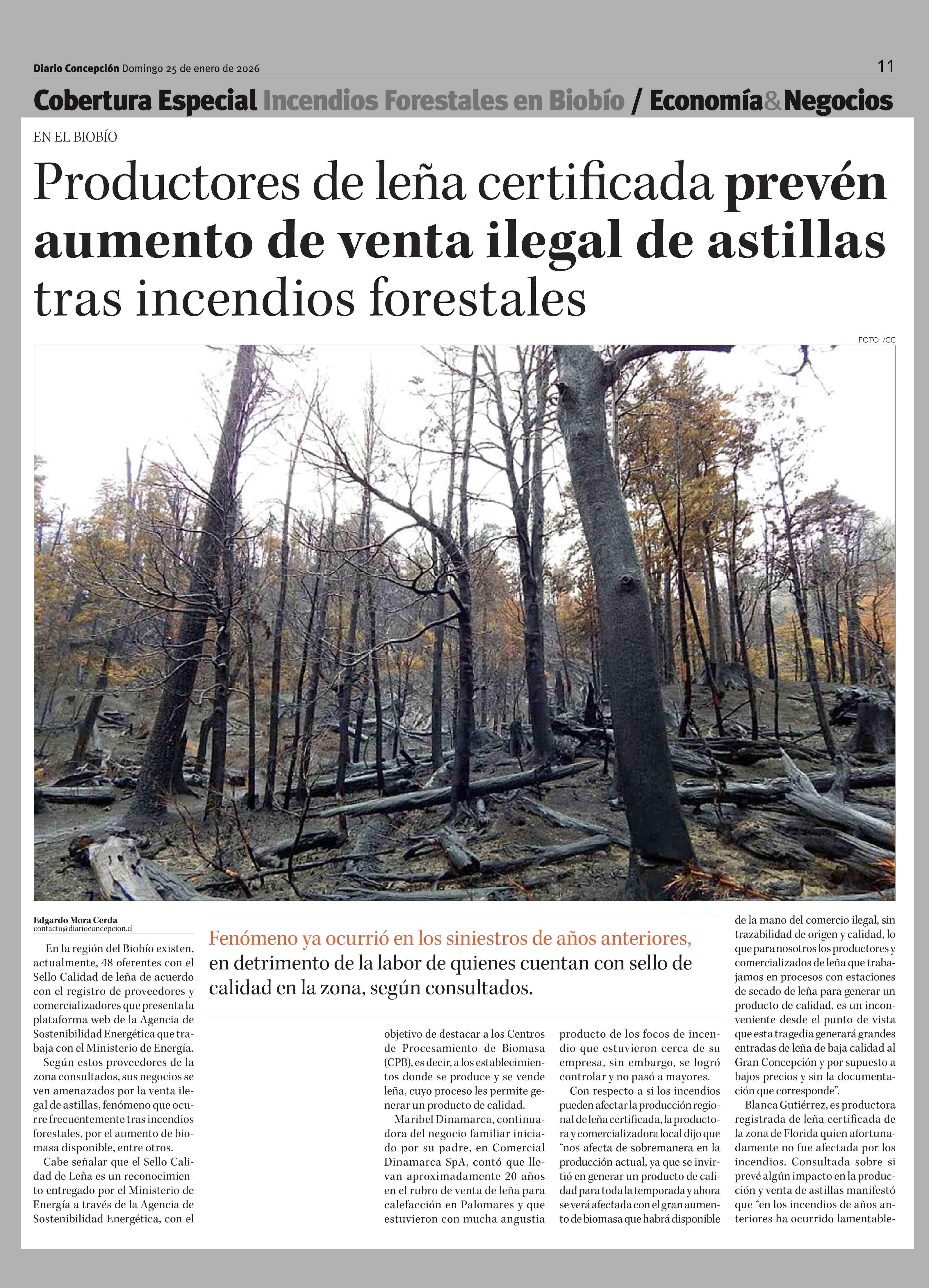 Productores de leña certificada prevén aumento de venta ilegal de astillas tras incendios forestales 25-01-2026 Diario Concepción |