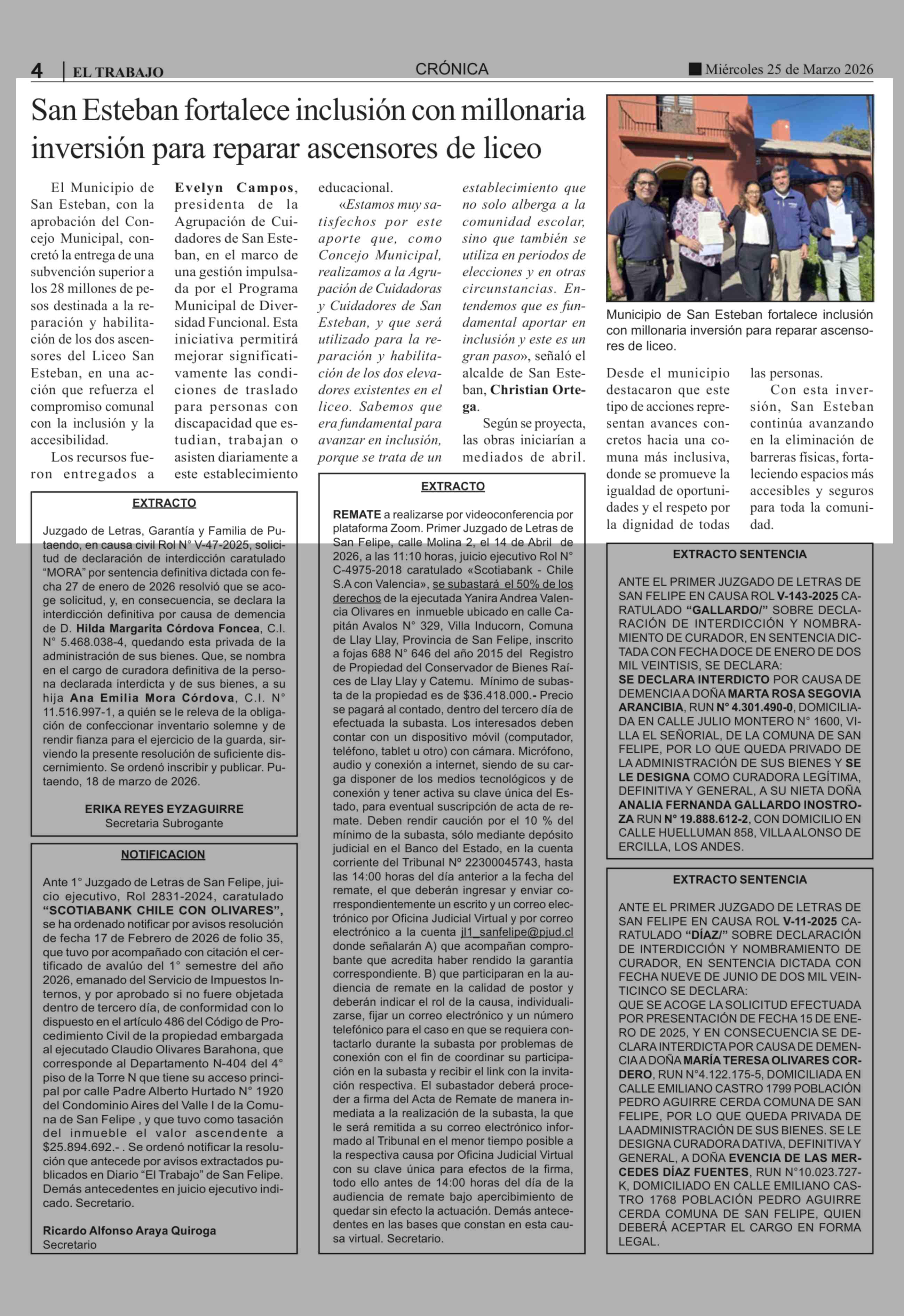 Título: San Esteban fortalece inclusión con millonaria inversión para reparar ascensores de liceo