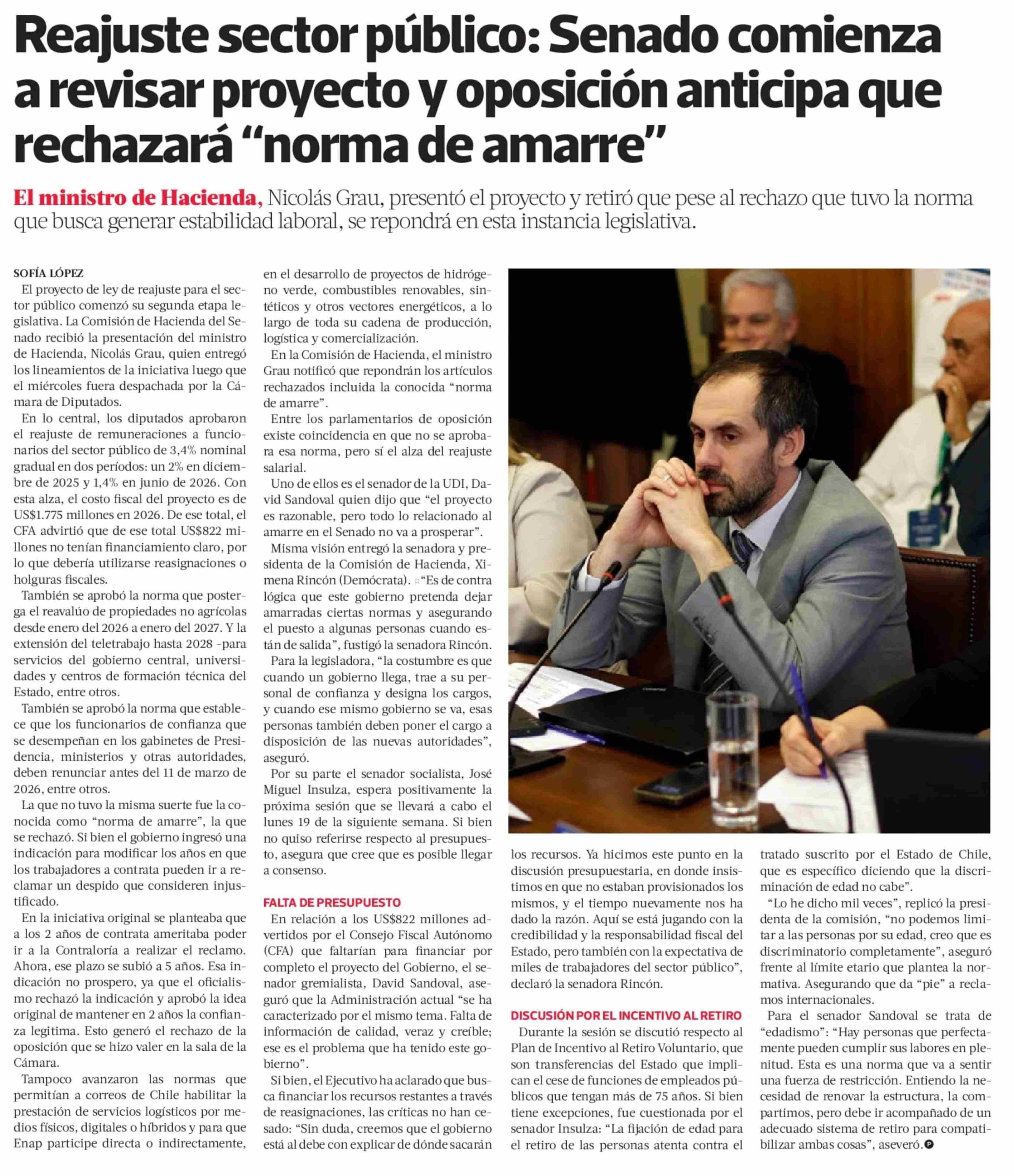 Título: Reajuste sector público: Senado comienza a revisar proyecto y oposición anticipa que rechazará "norma de amarre"