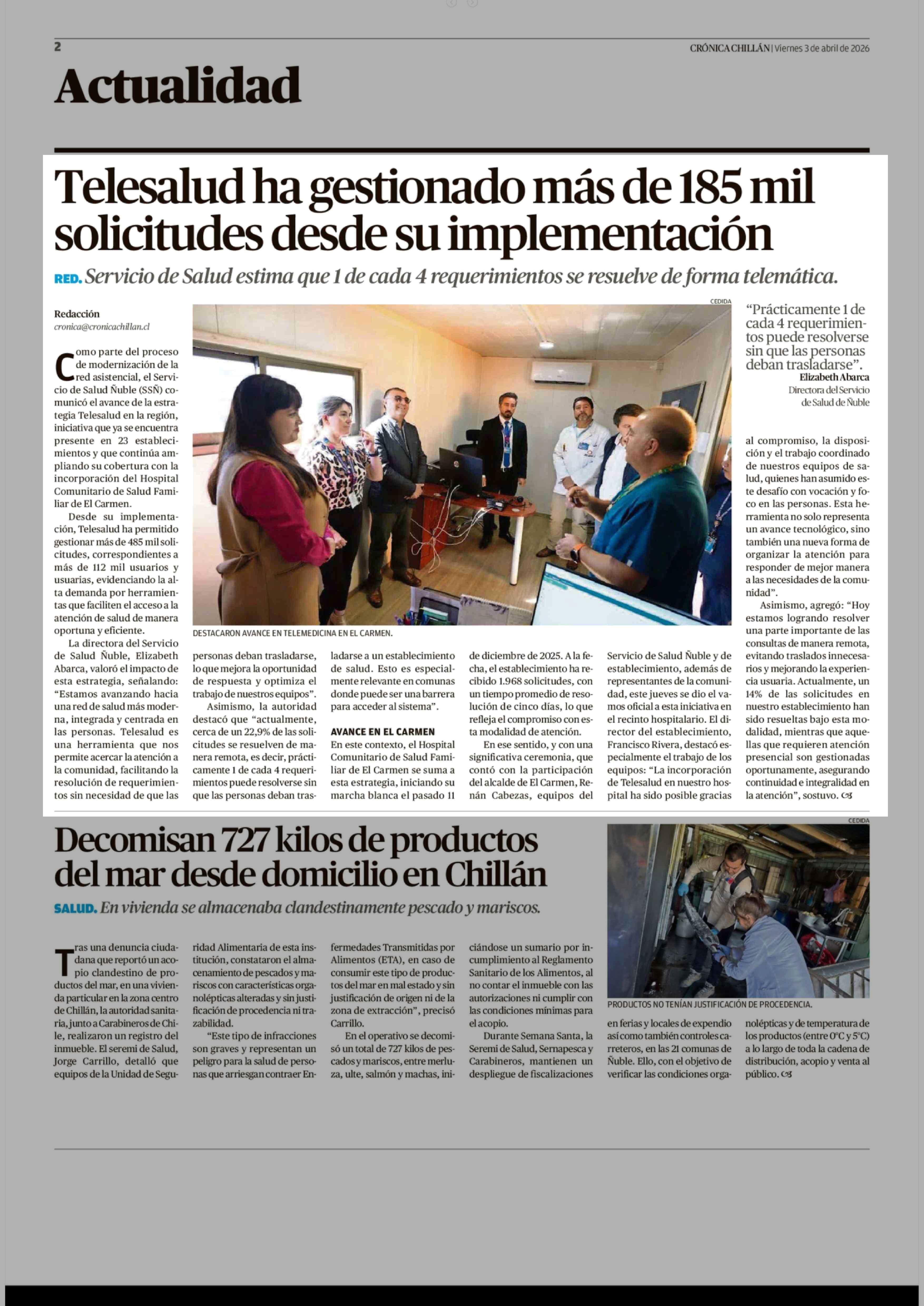 Fecha: 03-04-2026 Sector: Noticia general Región: Región del Ñuble
