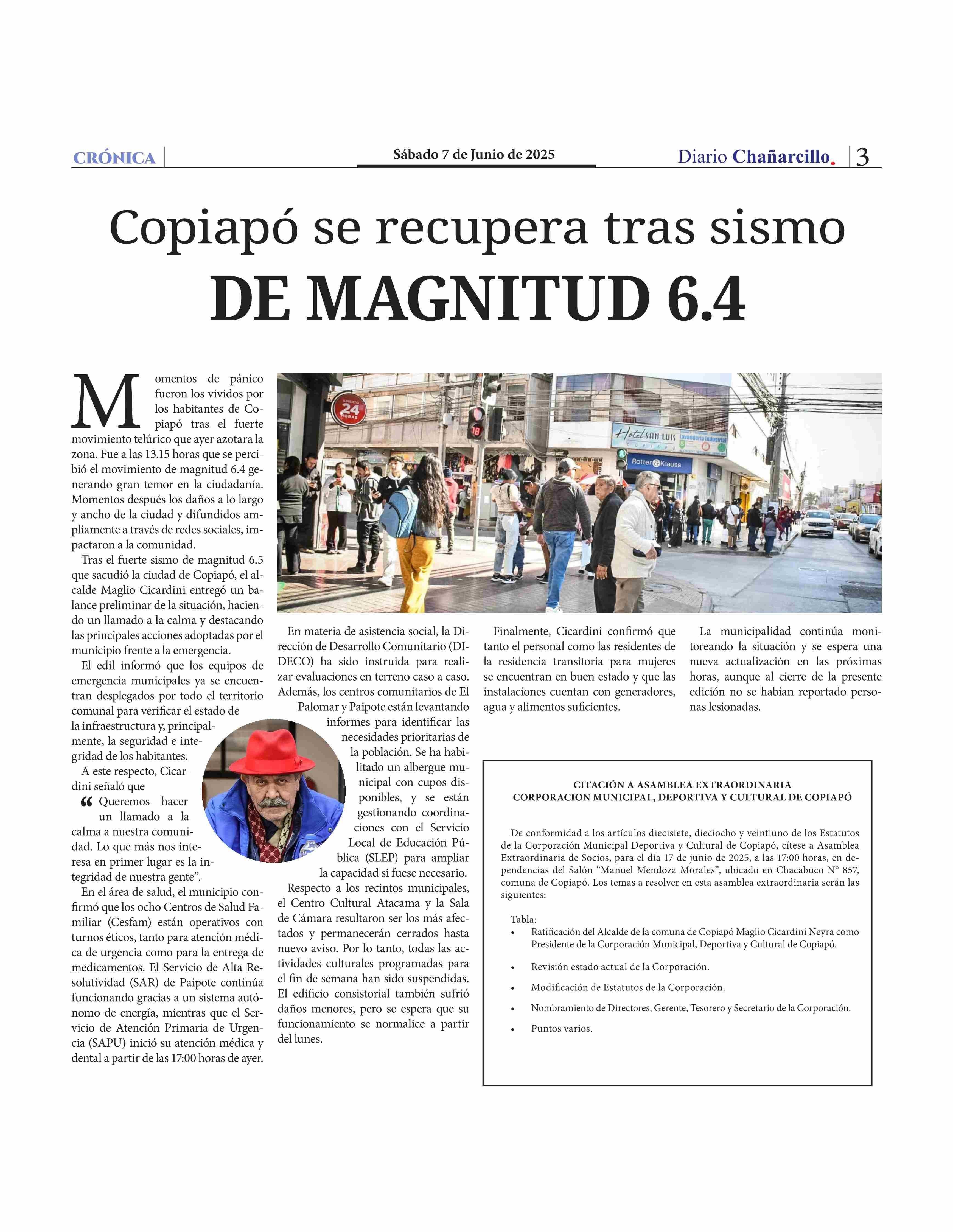 Copiapó se recupera tras sismo DE MAGNITUD 6.4 07-06-2025 Diario Chañarcillo |
