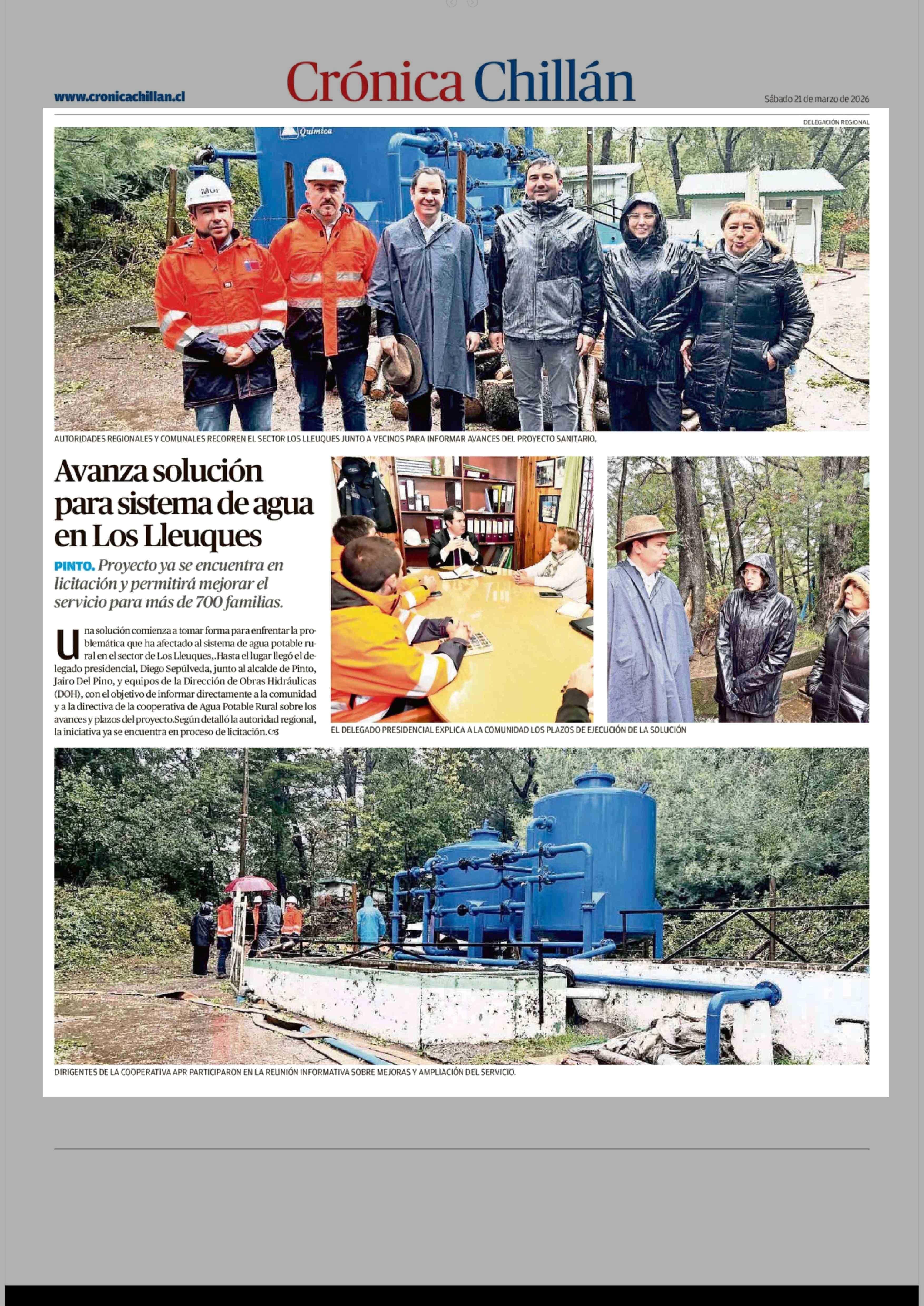 Título: Avanza solución para sistema de agua en Los Lleuques