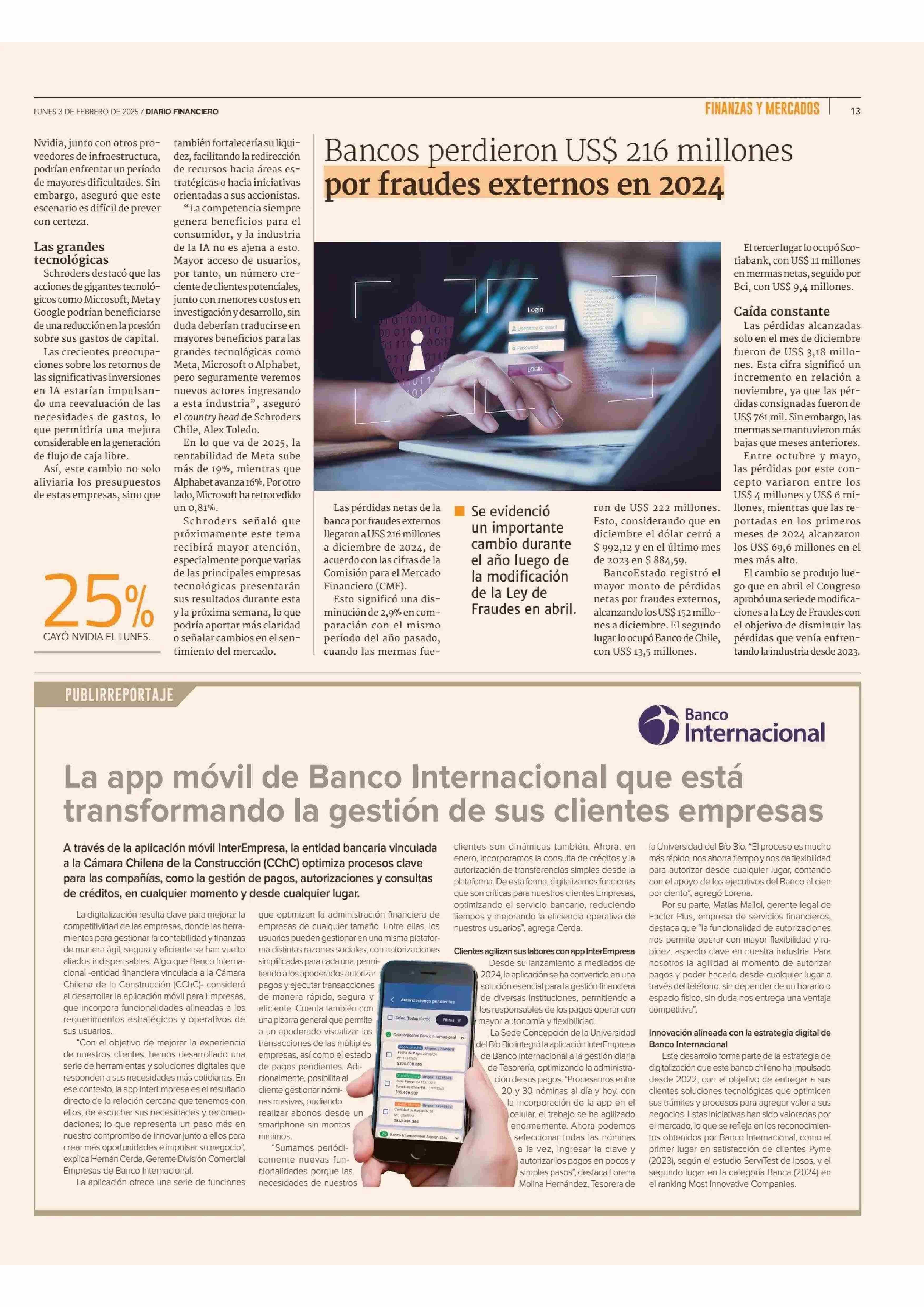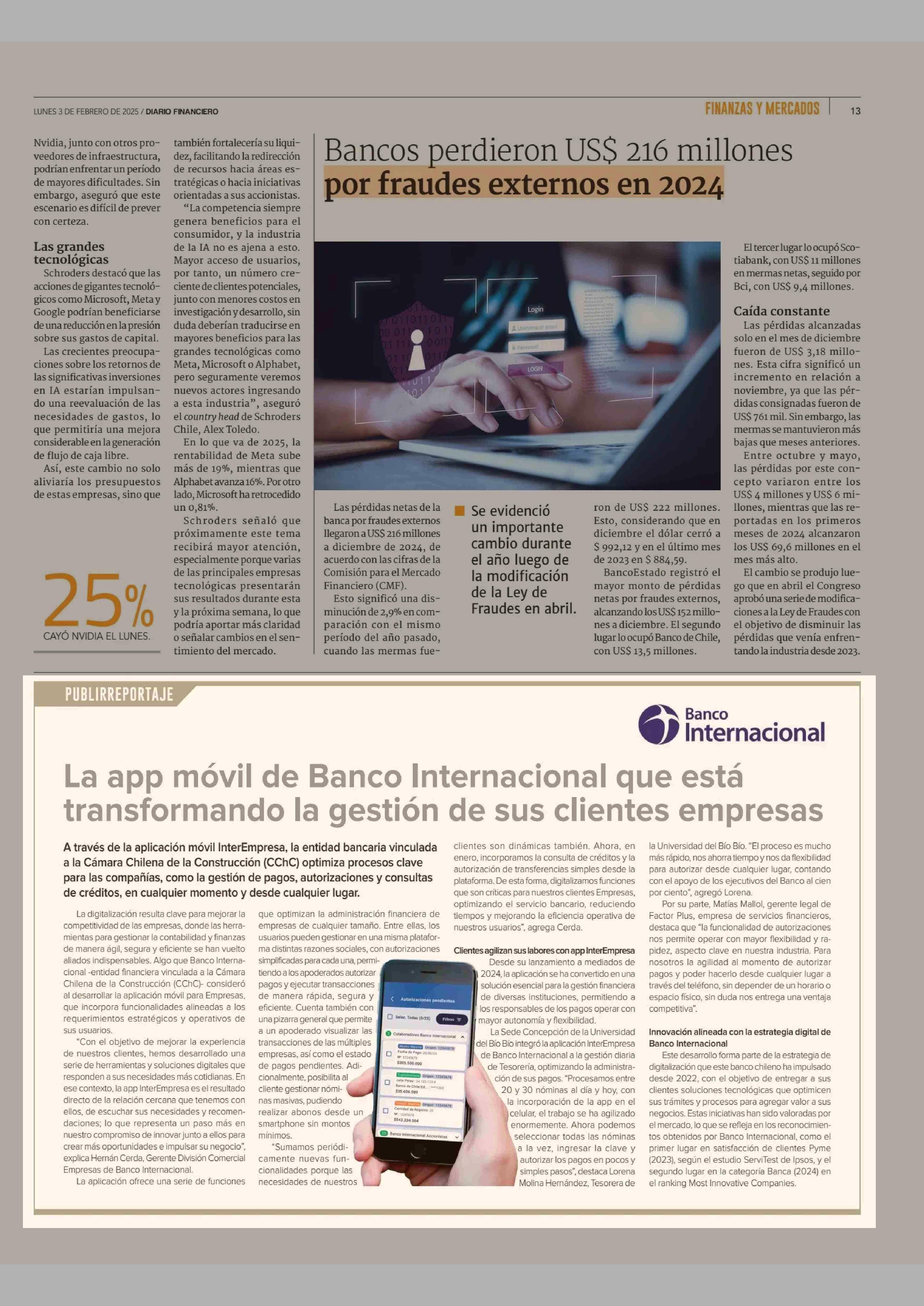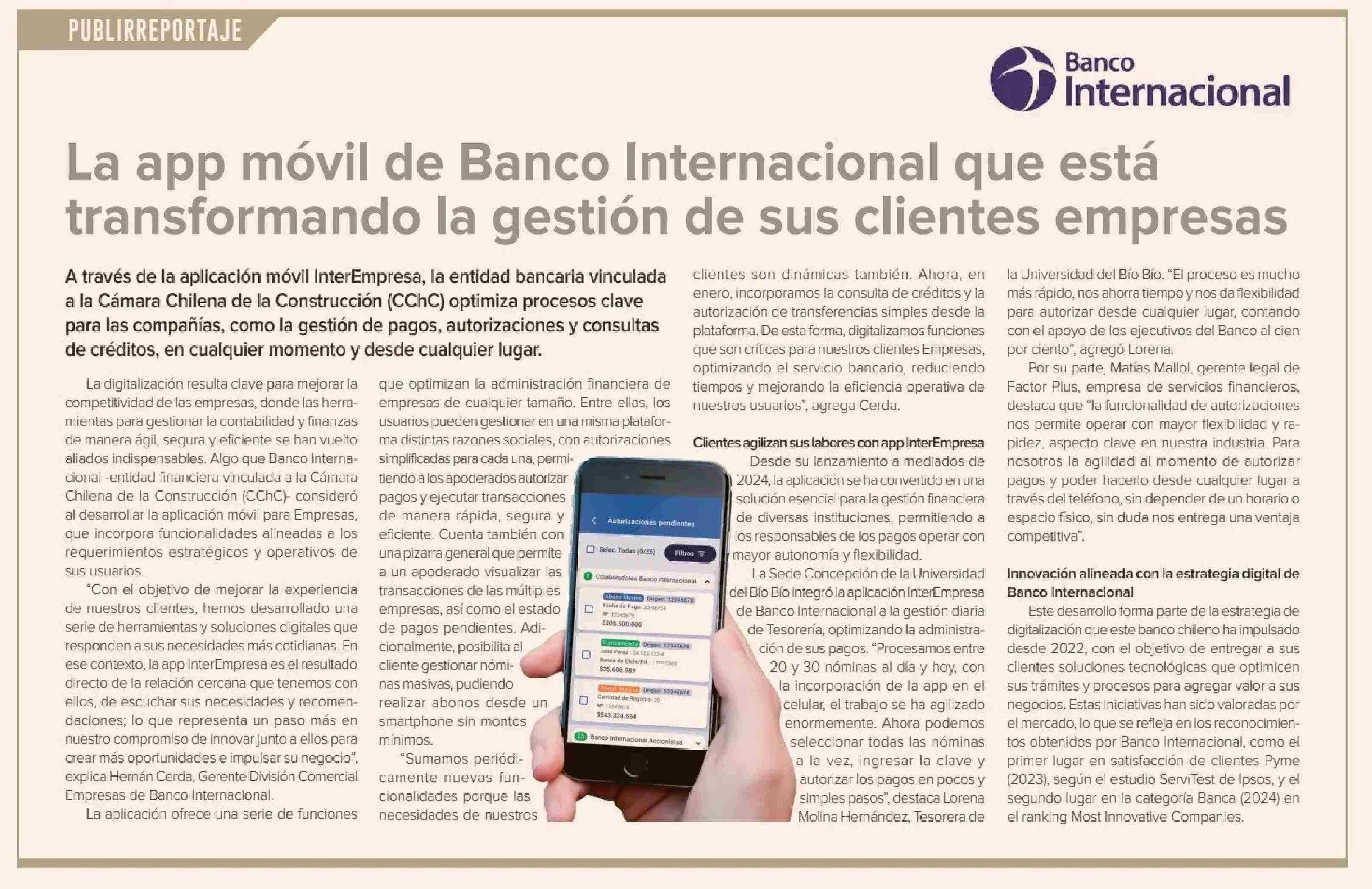 La app móvil de Banco Internacional que está transformando la gestión de sus clientes empresas 03-02-2025 Diario Financiero |