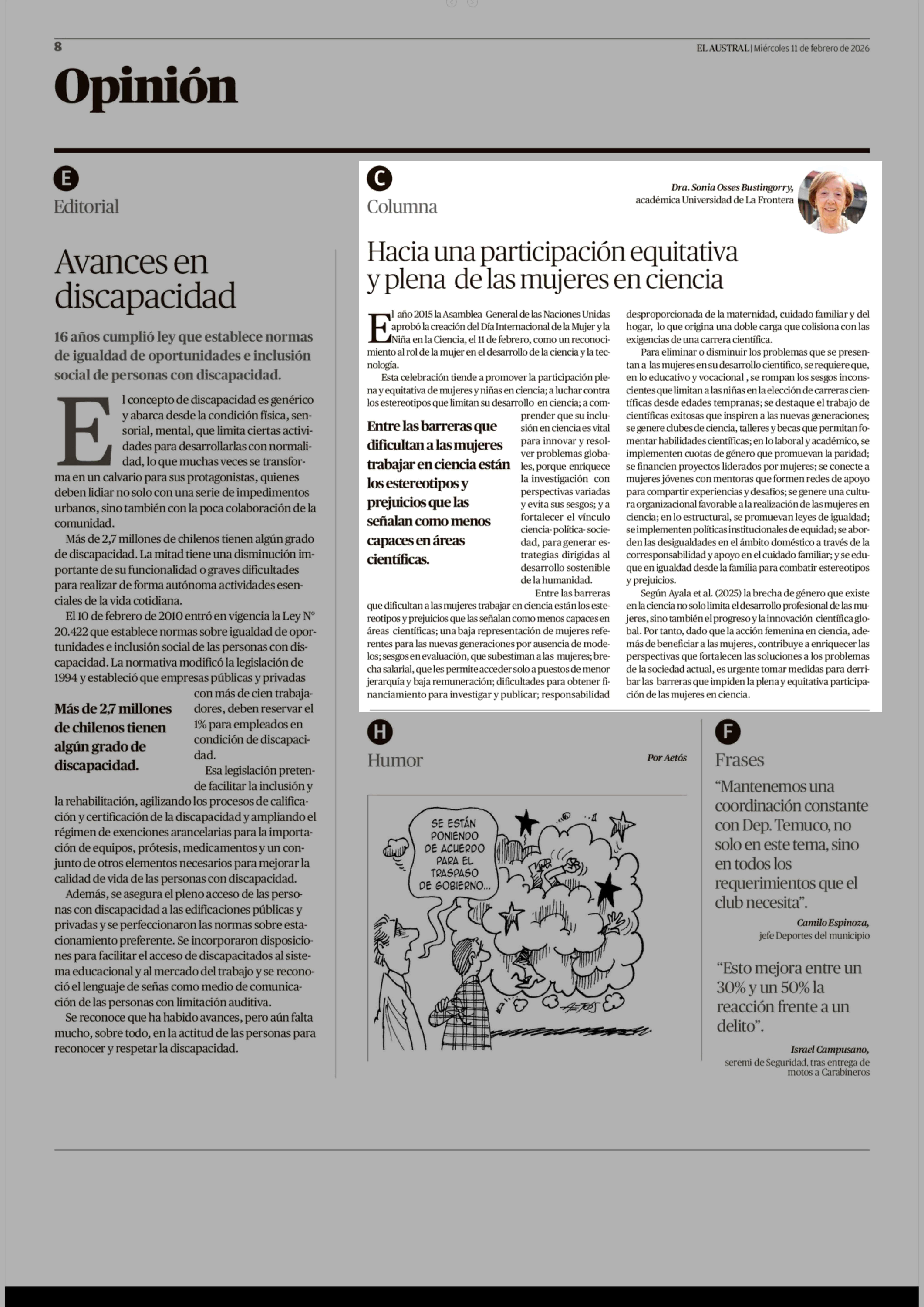Fecha: 11-02-2026 Sector: Columnas de Opinión Región: Región de la Araucanía