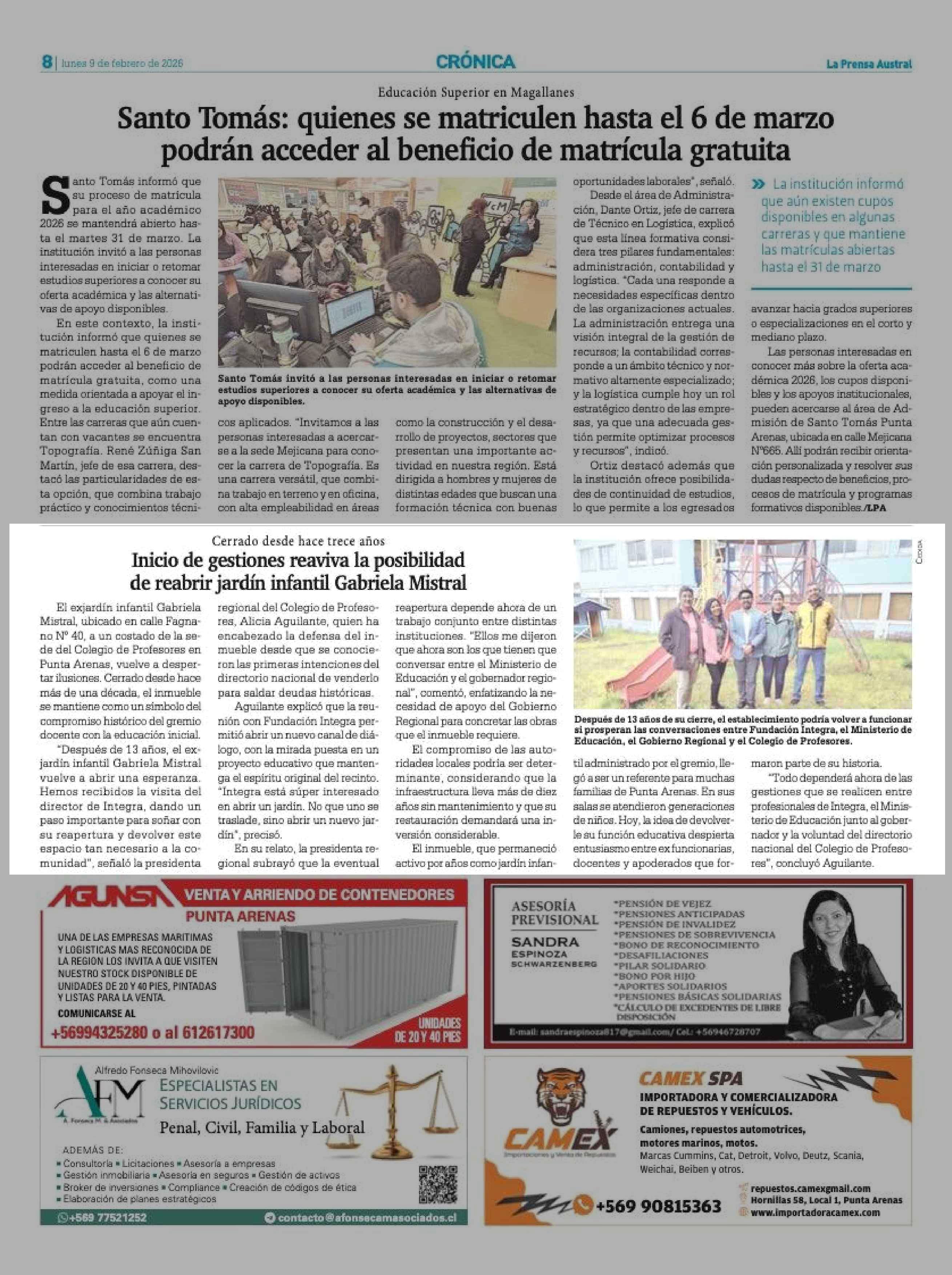 Inicio de gestiones reaviva la posibilidad de reabrir jardín infantil Gabriela Mistral 09-02-2026 La Prensa Austral |