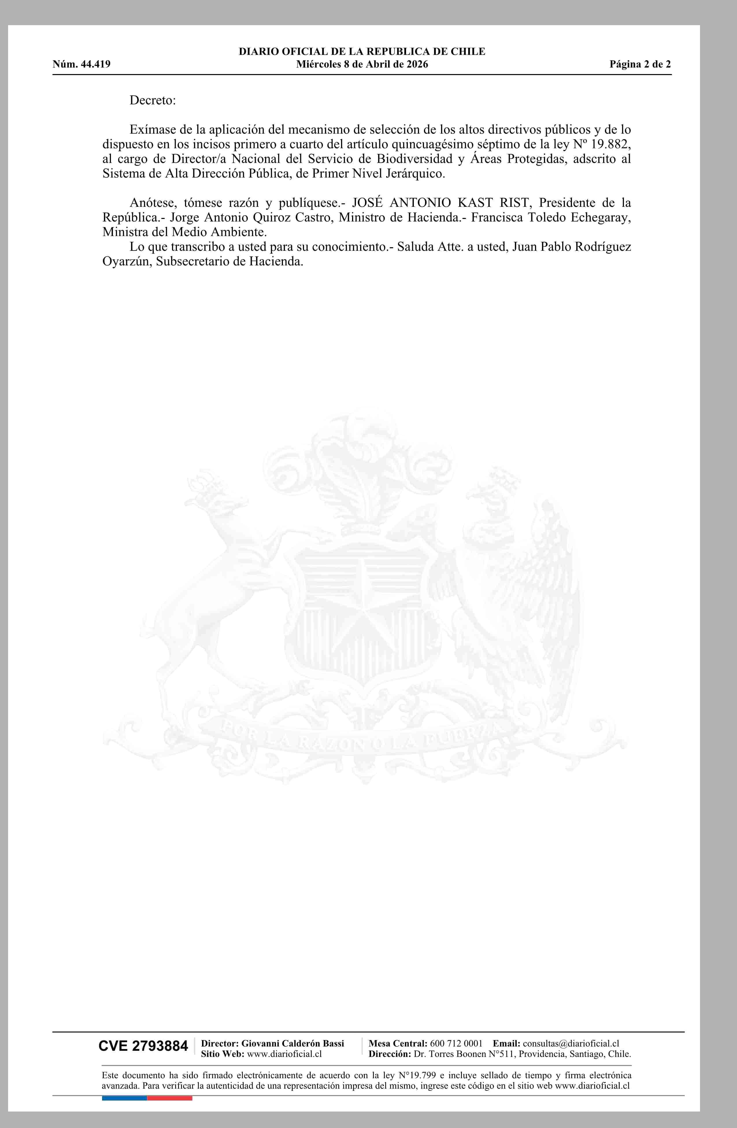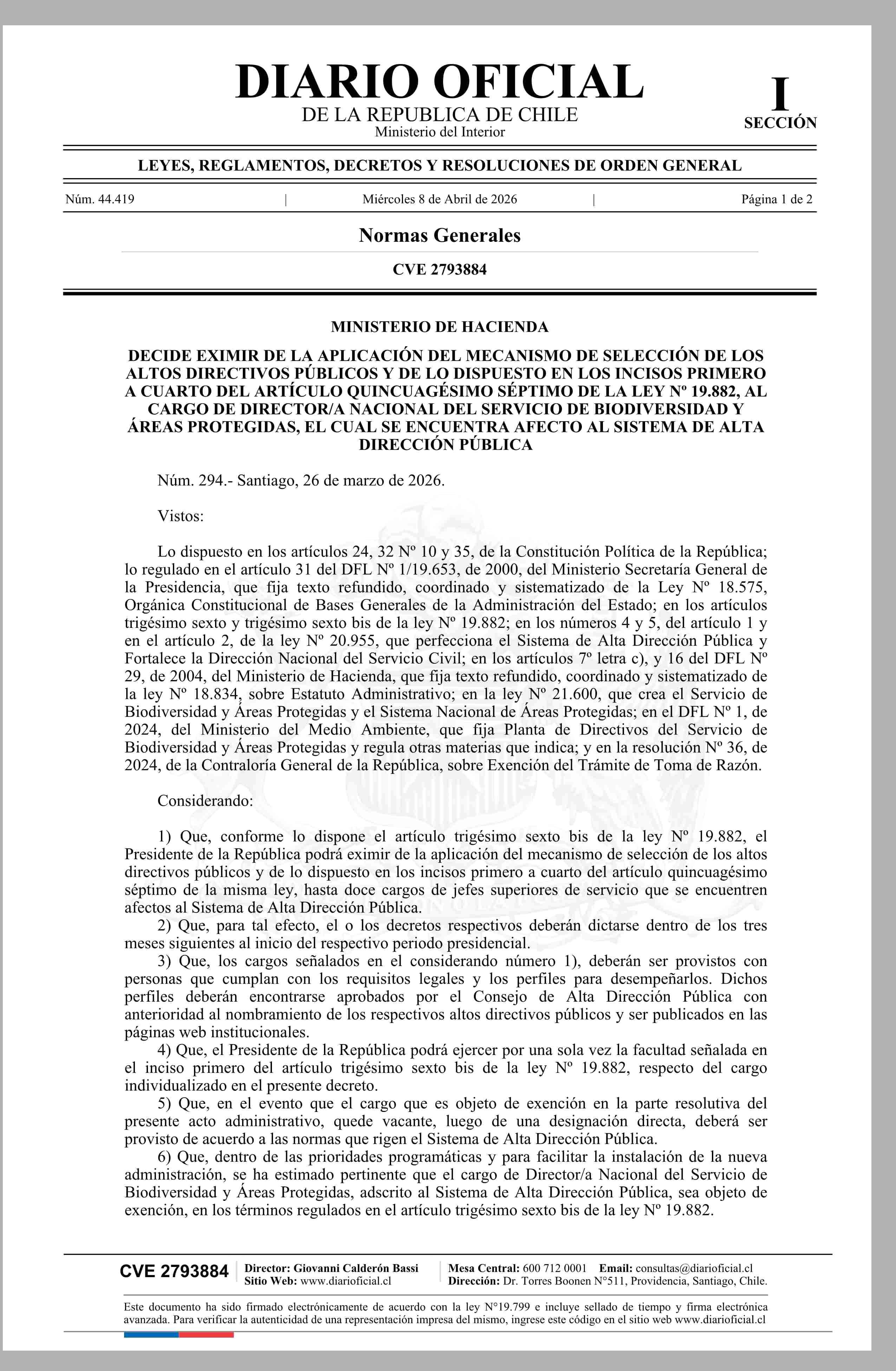 MINISTERIO DE HACIENDA 08-04-2026 Diario Oficial Edición Electrónica |