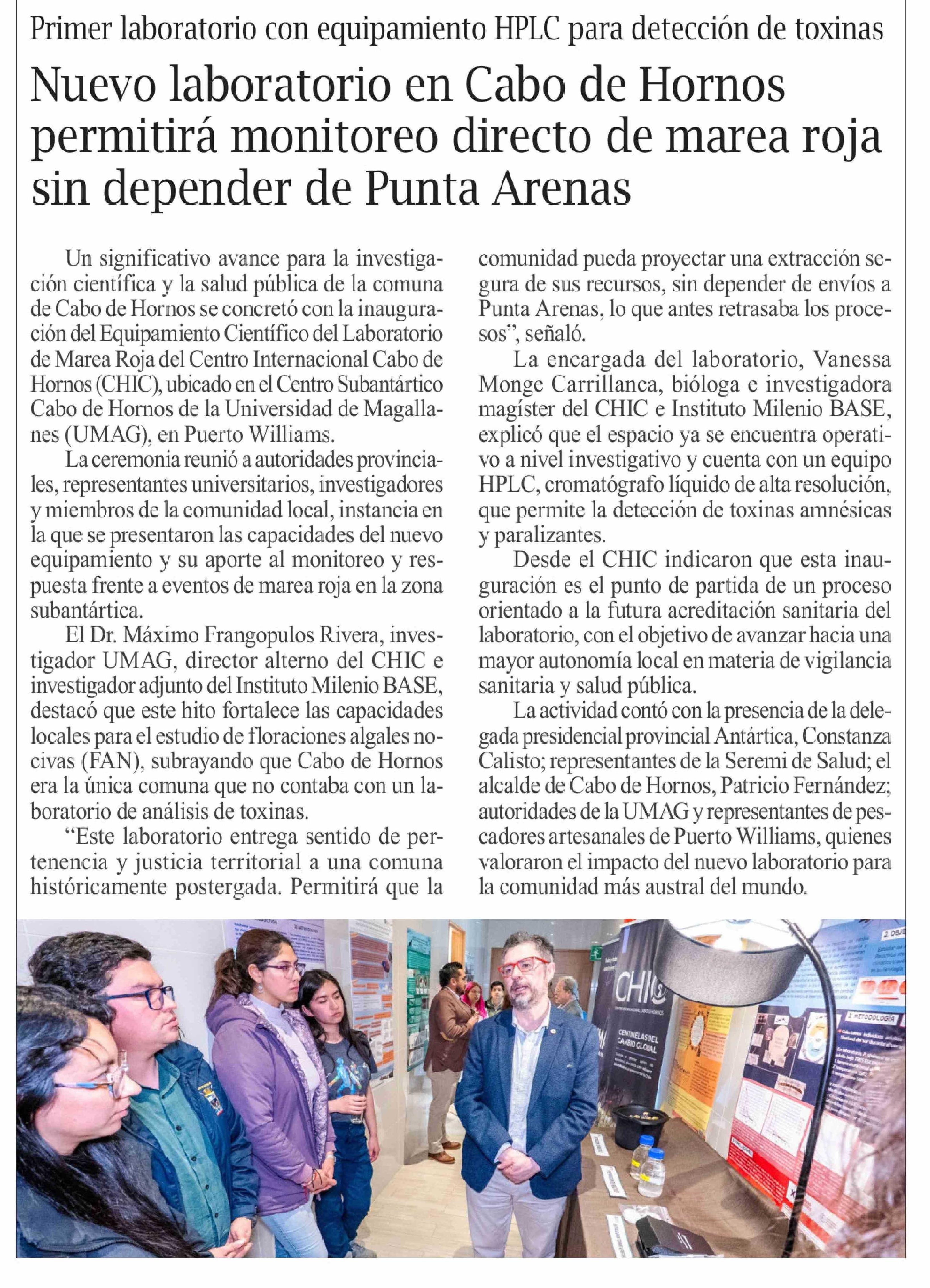 | Título: | Nuevo laboratorio en Cabo de Hornos permitirá monitoreo directo de marea roja sin depender de Punta Arenas |
