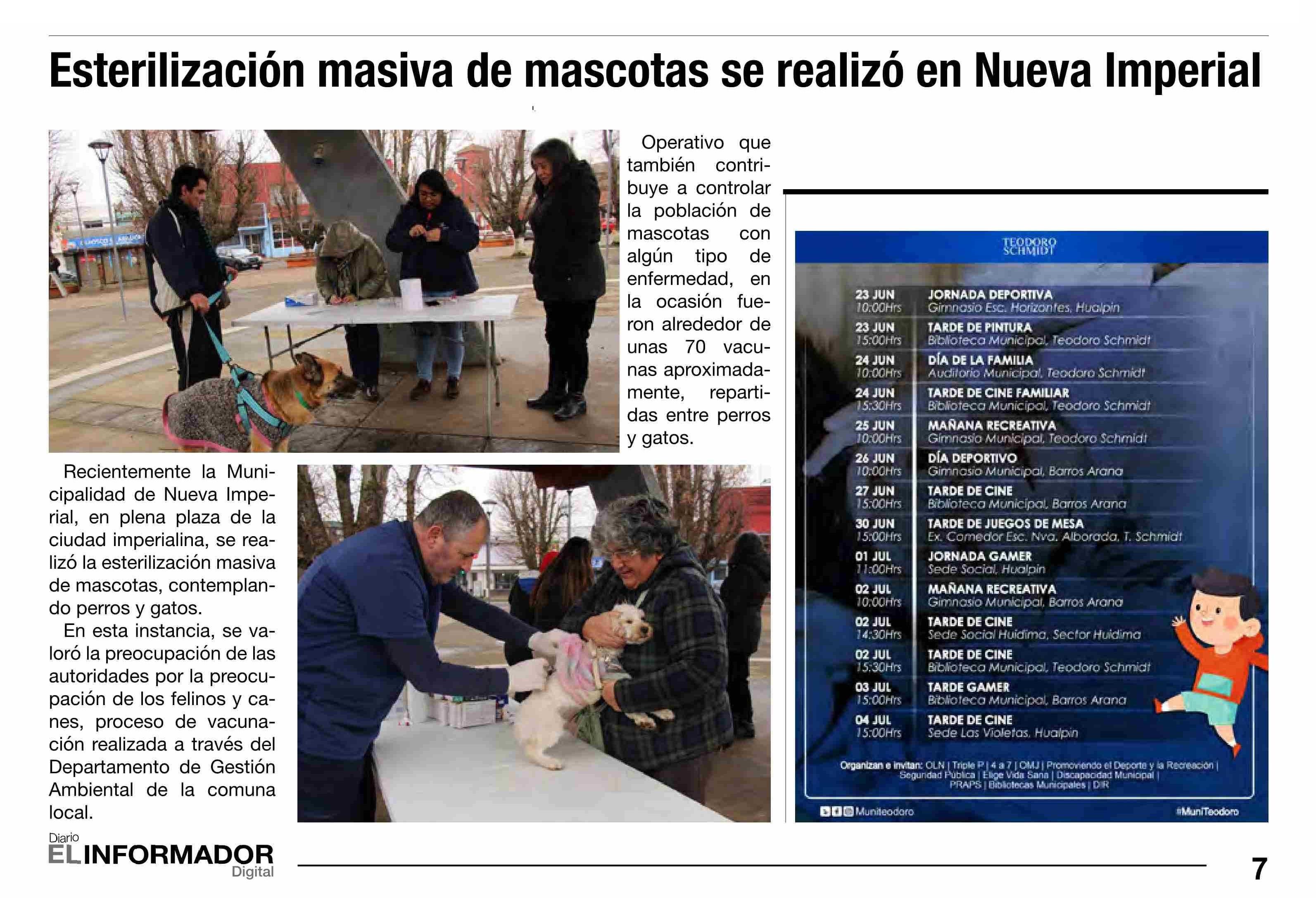 Esterilización masiva de mascotas se realizó en Nueva Imperial 18-06-2025 El Informador |