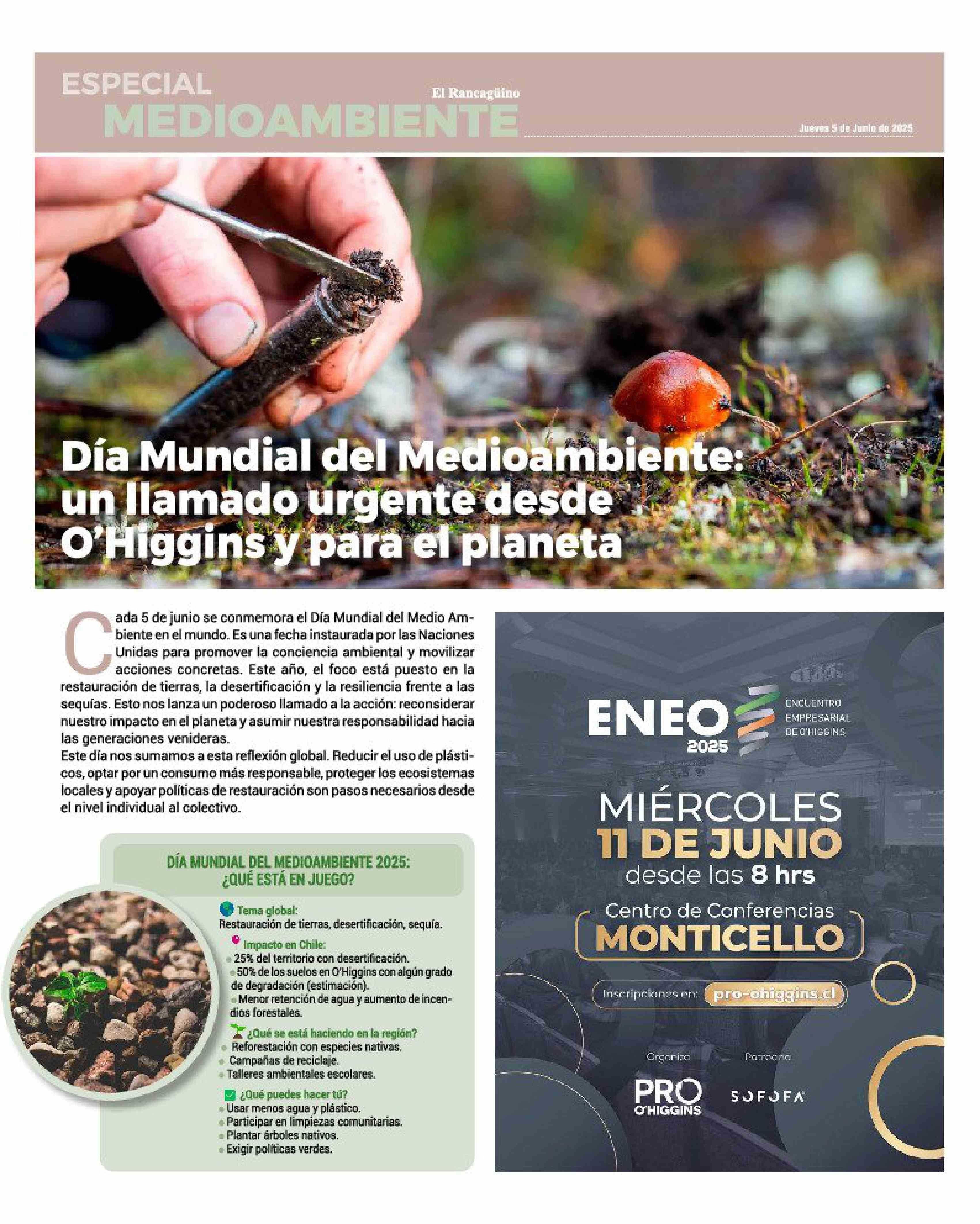 DÍA MUNDIAL DEL MEDIOAMBIENTE; UN LLAMADO URGENTE DESDE O'HIGGINS Y PARA EL PLANETA 05-06-2025 El Rancagüino |